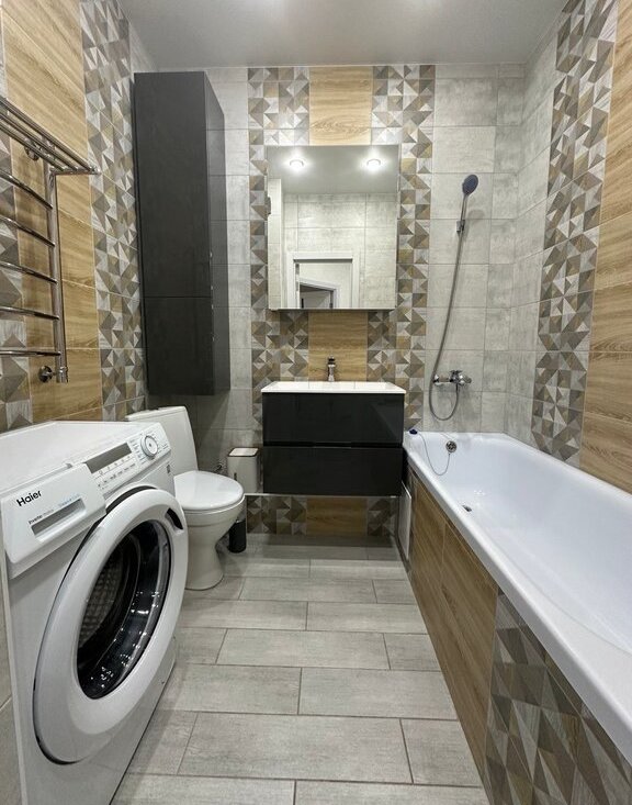 Ванная комната также оборудована всем необходимым: