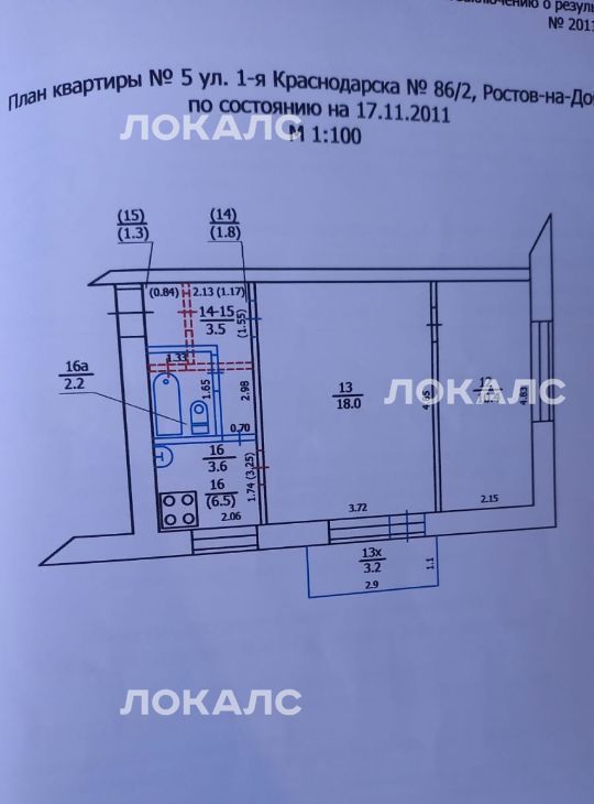 2-к кв. Ростовская область, Ростов-на-Дону 1-я Краснодарская ул., 86к2 (37.7 м²)