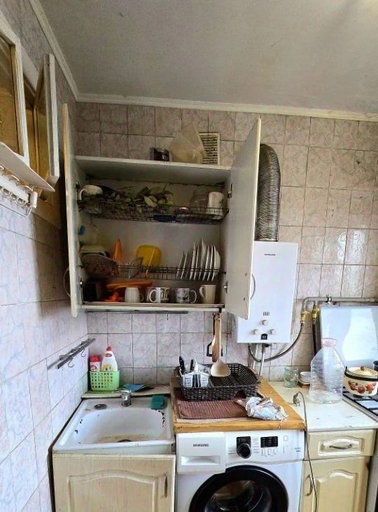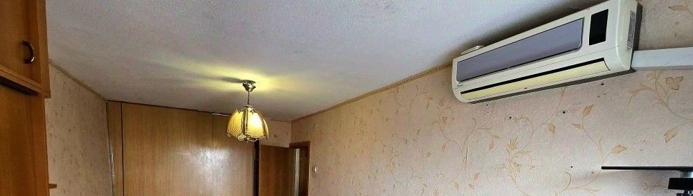 Косметический ремонт, всё из мебели и бытовой техники: два двуспальных дивана и ещё одна кровать, стенка, вместительные шкафы для одежды, стол и стулья, встроенная мебель на кухне, немного посуды; сплит-система, холодильник, стиральная машина-автомат.