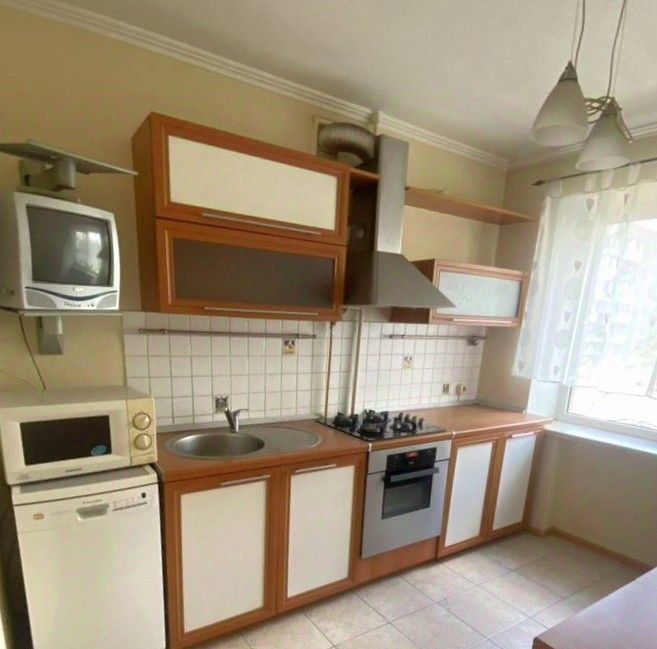 Планировка квартиры включает две комнаты, кухню, совмещенный санузел, в котором установлена ванна и балкон, выход на который из спальной комнаты. Кондиционер, холодильник, плита, микроволновка, стиральная машина, посудомоечная машина, телевизор есть все необходимое для проживания. Для хранения вещей предусмотрено три вместительных шкафа.