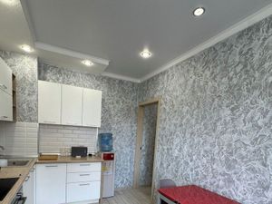 В квартире выполнен качественный ремонт: установлены современные окна ПВХ, стильные натяжные потолки. На полу уложена практичная плитка, в одной из комнат — уютный ламинат. Совмещённый санузел отделан кафельной плиткой.