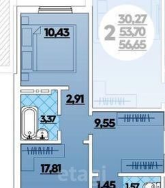 2-к кв. Ростовская область, Ростов-на-Дону просп. Королева, 12 (52.2 м²)