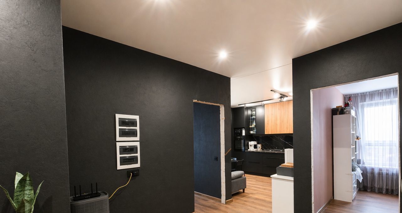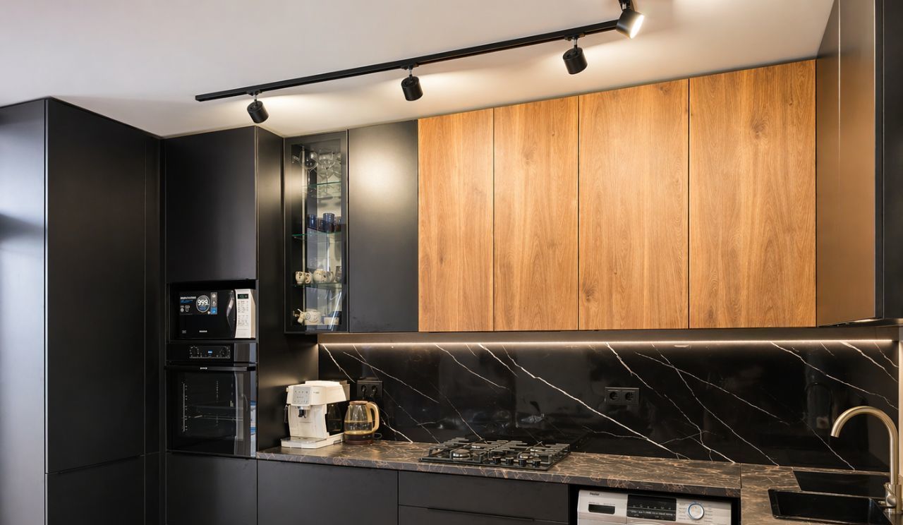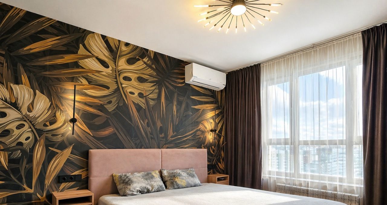 Квартира с современным ремонтом в стильной цветовой гамме — тёплые оттенки, контрастные решения, натуральные фактуры.