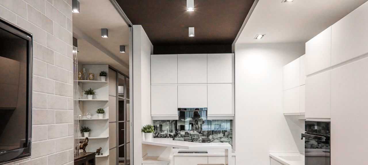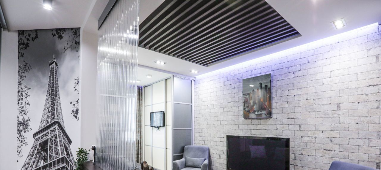 Планировка: гостиная с ТВ + спальня + кухня-столовая.