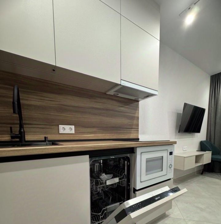 Полная комплектация всей мебелью и бытовой техникой ( посудомойка, СВЧ, Сплит-система, духовой шкаф, варочная панель, ТВ, утюг, холодильник, боллер для нагрева воды, стиральная машина., электрочайник. По запросу пылесос.)