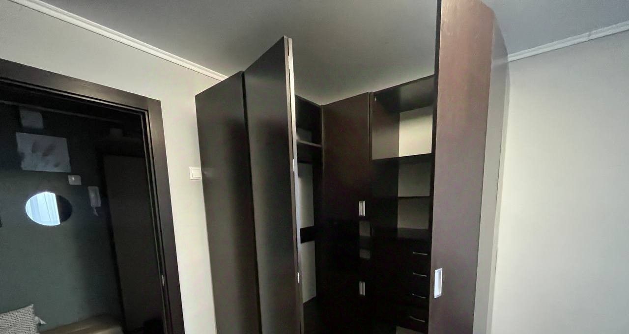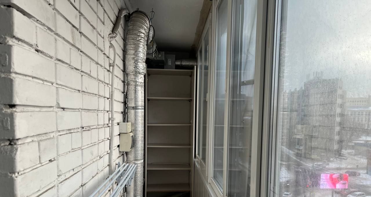 Много мест хранения, длинная лоджия со шкафами.