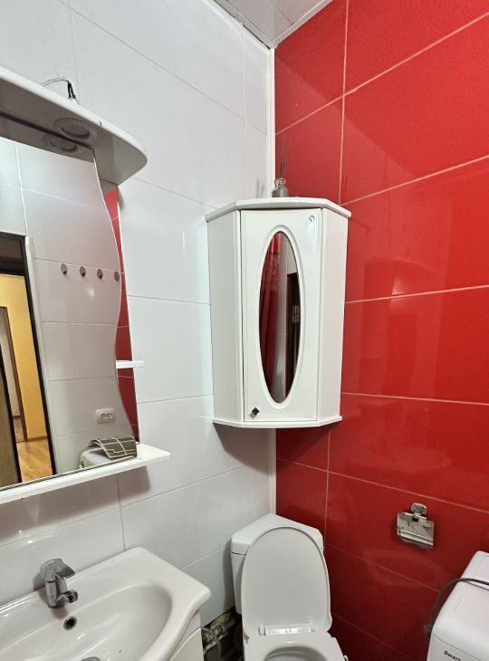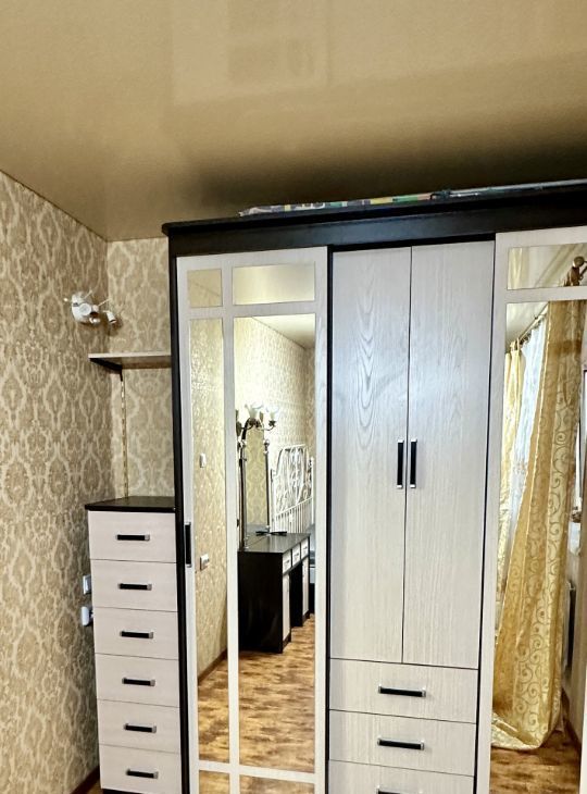 Входная дверь очень качественная с шумоизоляцией. Квартира уютная, планировка книжка. Квартира полностью мебелизирована: огромные шкафы, большая кровать, удобный диван, тумбы, комоды, туалетный столик, большая вместительная тумба под телевизор, рабочее место с компьютерным креслом. Кухня встроенная, газовая панель, духовка электрическая, микроволновая печь, современный холодильник. Сплит система, телевизор, стиральная машинка. Много зеркал и простора. Просторный балкон из которого открывается вид на зеленый двор. Соседний дом напротив расположен далеко, соседи в окна заглядывать не будут.