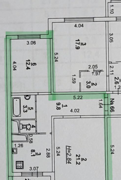 - Высота потолков 2,84 м