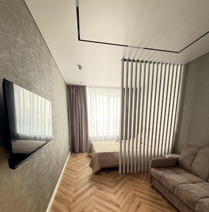 Квартира выполнена с дизайнерским ремонтом, что подчёркивает её стиль и комфорт. В комнатах есть мебель, а также вся необходимая техника: холодильник, телевизор и стиральная машина. Санузел совмещённый, оборудован современной душевой кабиной. Из окон открывается вид во двор, что обеспечивает тишину и спокойствие. Лоджия добавляет дополнительное пространство для отдыха или хранения.