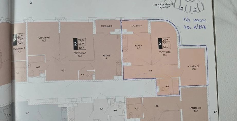 Квартира расположена во 2-м подъезде на 13 этаже, не угловая.