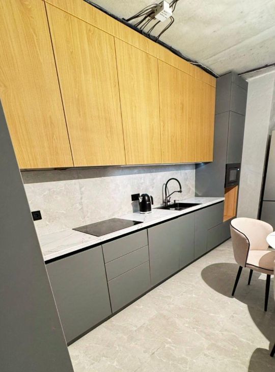 В квартире сделан стильный евроремонт, который создает атмосферу комфорта и уюта. В наличии вся необходимая техника: кондиционер, холодильник, посудомоечная машина, телевизор, стиральная машина. Кухня и комнаты полностью меблированы, поэтому можно сразу заселяться и наслаждаться жизнью. Санузел совмещенный, оборудован ванной, поэтому можно расслабляться после трудового дня.