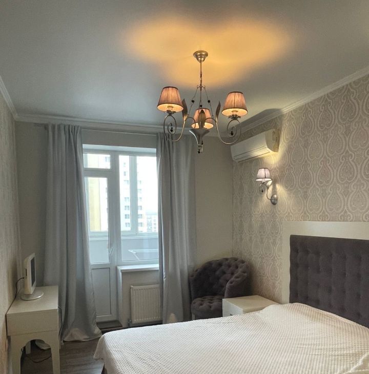 В квартире есть всё необходимое для комфортного проживания: современная мебель на кухне и в комнате, кондиционер, холодильник, посудомоечная машина, телевизор и стиральная машина. Санузел совмещённый с ванной. Также есть одна лоджия и один балкон, на которых можно наслаждаться свежим воздухом.