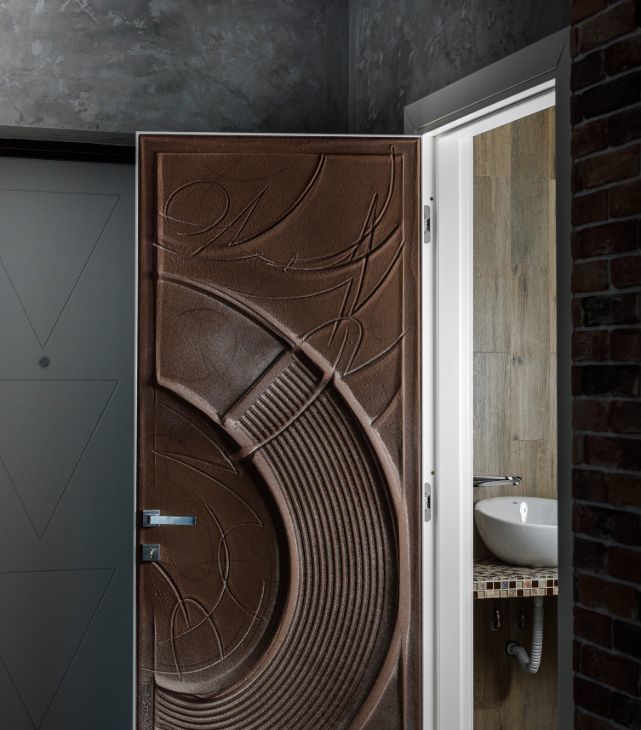 В ванной комнате, присутствует уникальная Итальянская Дверь из мытого песка.
