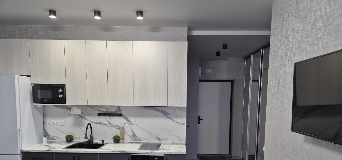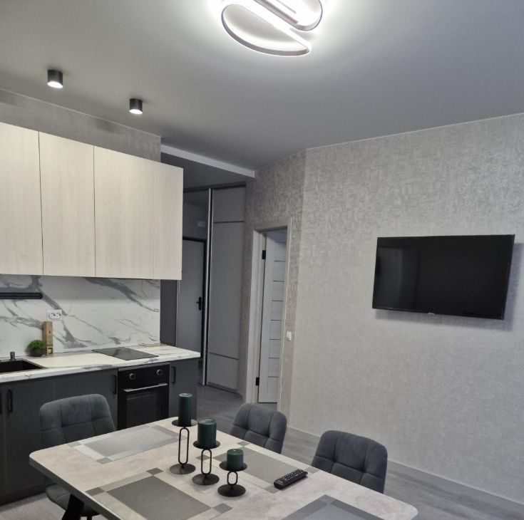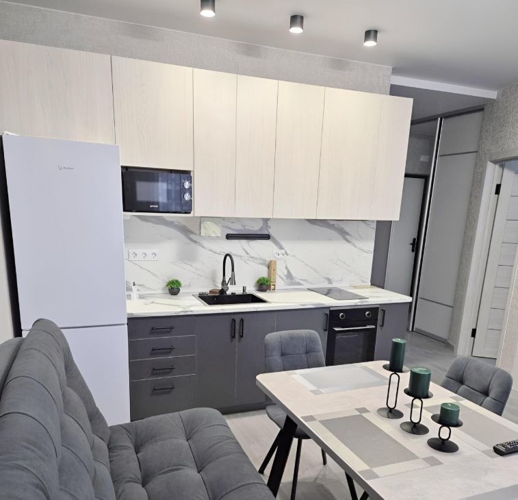В квартире есть все необходимое для комфортного проживания. На кухне и в комнате установлена современная мебель. Из техники — кондиционер, холодильник, телевизор и стиральная машина. Ванная комната оборудована ванной. Также имеется балкон, где можно насладиться свежим воздухом и видом на город.