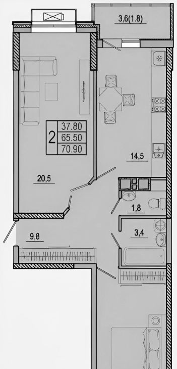 2-к кв. Ростовская область, Ростов-на-Дону ул. Шеболдаева, 95с2 (71.0 м²)