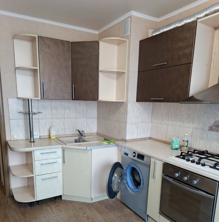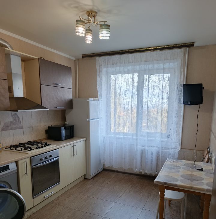 квартира в хорошем состоянии,без дефектов. мебель и техника есть. большая застеклённая лоджия с видом на проспект. во дворе школа в 25 метрах.садик в 5 минутах ходьбы . в торце дома большая автостоянка. до ТРЦ Талер 10 минут пешком.