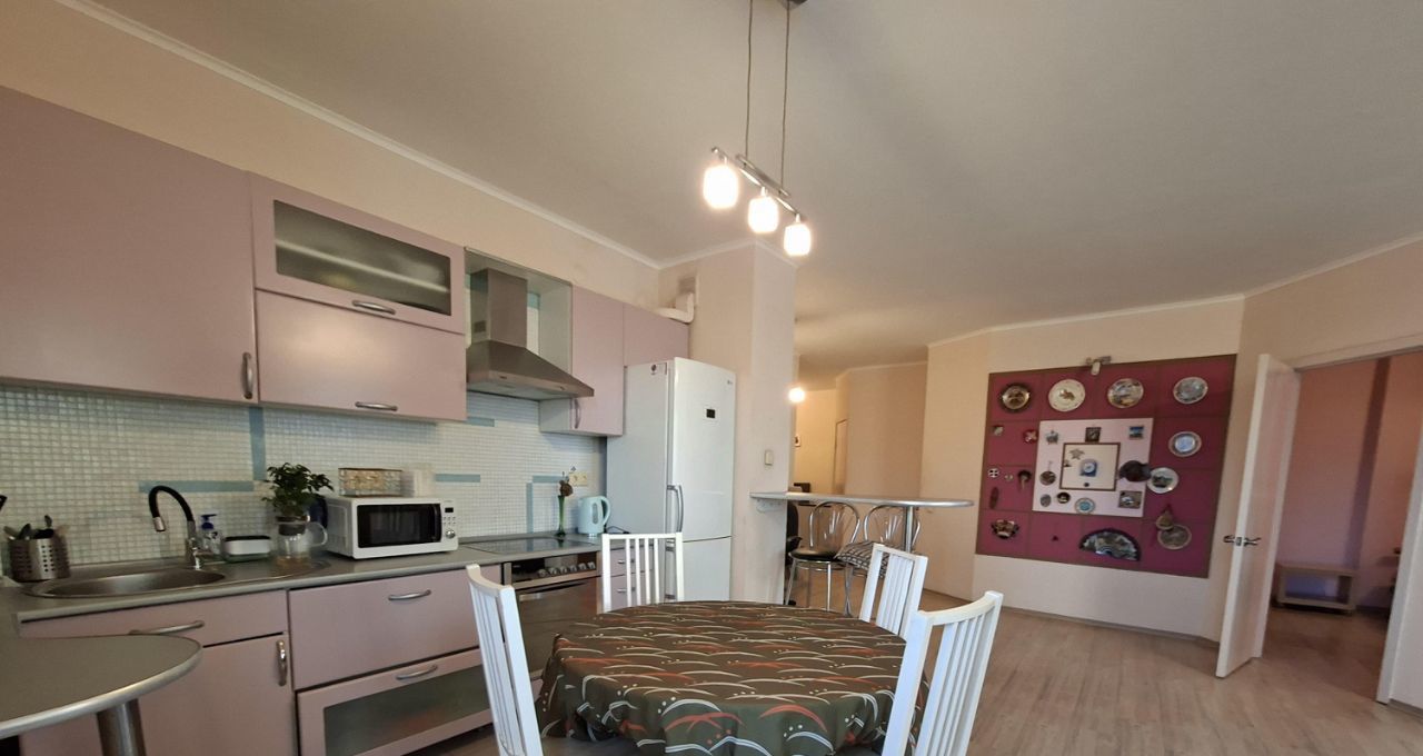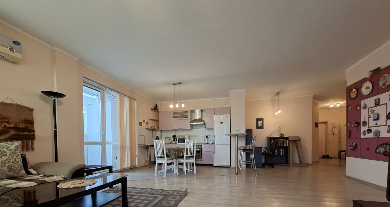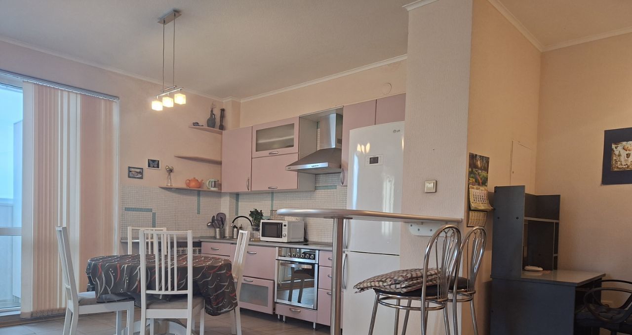 В квартире есть все необходимое для комфортного проживания: удобная мебель на кухне и в комнате, кондиционер, холодильник, телевизор и стиральная машина. Совмещенный санузел оборудован ванной. Просторные 2 лоджии станут отличным местом для отдыха или хранения сезонных вещей.