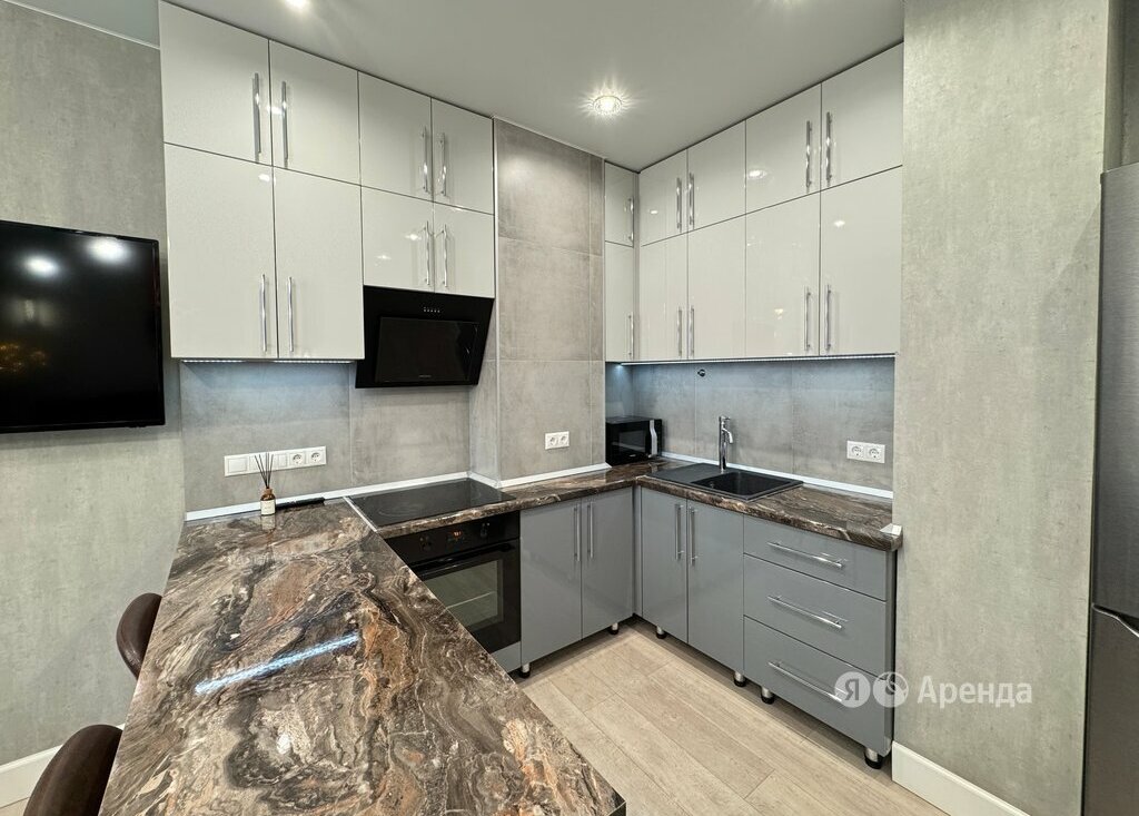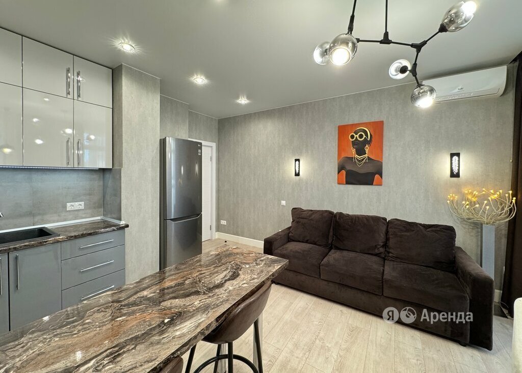 Сдаётся 2-комнатная квартира площадью 40 кв.м. с дизайнерским ремонтом на 4 этаже в 24-этажном доме на срок от 11 месяцев. Из техники есть: