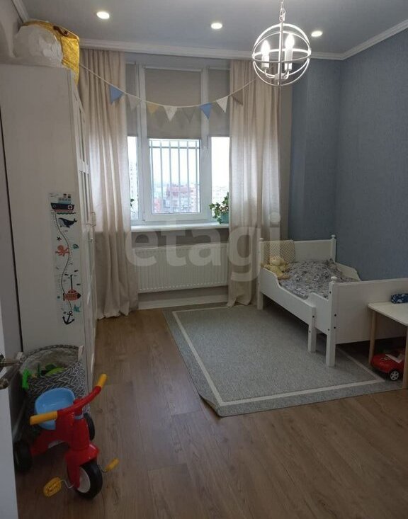 Предлагается к продаже просторная трехкомнатная квартира евроформата в отличном состоянии, расположенная в современном доме с консьержной службой и видеонаблюдением. Объект отличается качественной чистовой отделкой, выполненной для собственного проживания. Планировка включает две изолированные спальни( взрослая спальня, совмещенную кухню-гостиную площадью 23 кв.м, с двуспальной кроватью и детская) гардеробную и утепленную лоджию с панорамным видом на благоустроенную территорию комплекса. В квартире установлена вся необходимая техника: кондиционер, холодильник, варочная панель, духовой шкаф, стиральная и посудомоечная машины.