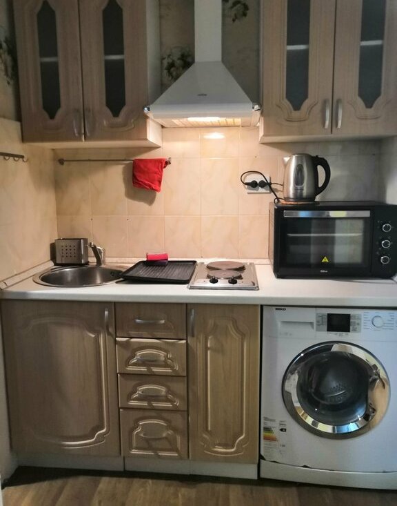 В квартире есть мебель и техника: стиральная машина, холодильник, телевизор, кондиционер, микроволновая печь, 3 спальных места- диван 2х местный и кровать.