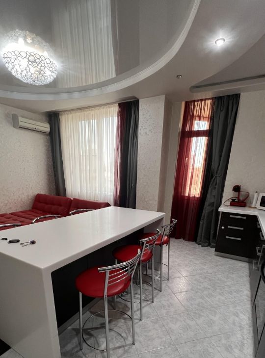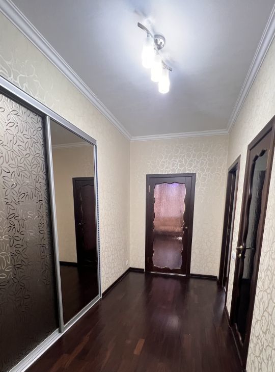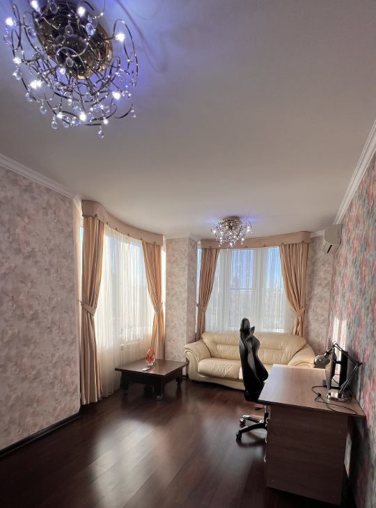 Предлагаем вашему вниманию просторную 3-комнатную квартиру с евроремонтом в аренду. Общая площадь — 100 кв. м, расположена на 5-м этаже 17-этажного кирпичного дома, построенного в 2009 году. Высота потолков — 3 метра, что создает ощущение дополнительного простора. Из окон открывается вид как на улицу, так и во двор, поэтому в квартире тихо и уютно.