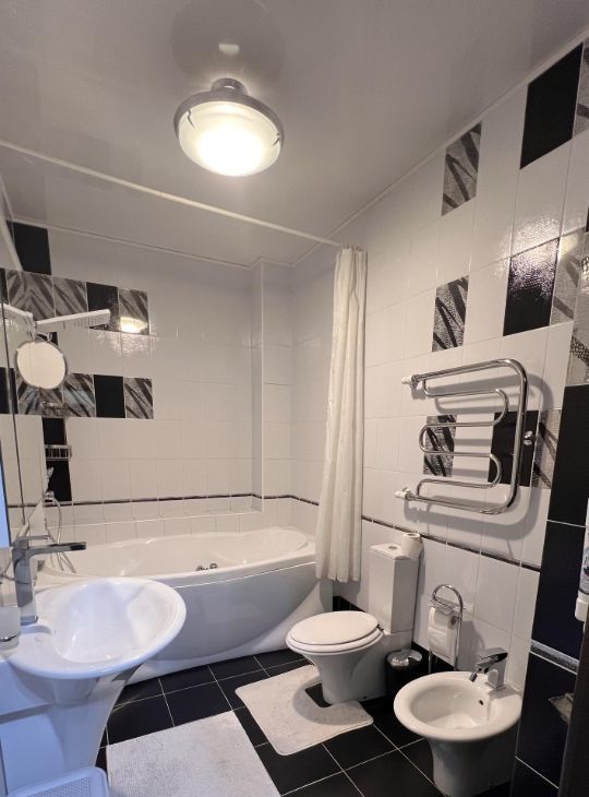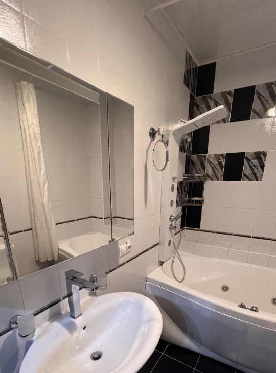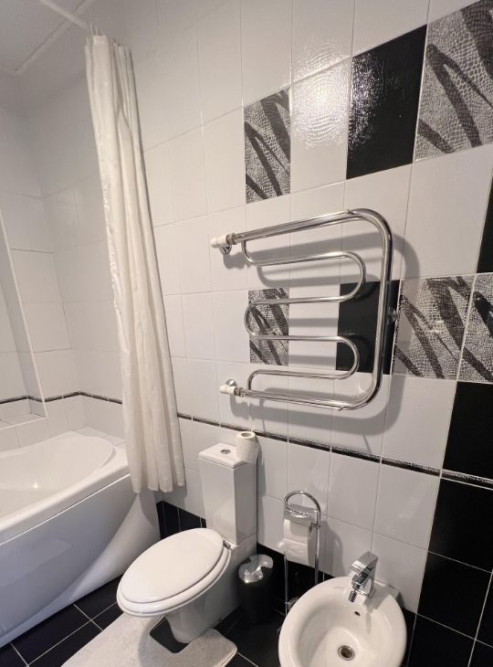 Квартира полностью меблирована: на кухне и в комнатах есть вся необходимая мебель. Встроенная техника включает кондиционер, холодильник, посудомоечную и стиральную машины, а также телевизор. В ванной комнате установлена ванна, что позволит вам расслабиться после рабочего дня. Планировка квартиры предусматривает одну лоджию и один балкон, где можно провести время на свежем воздухе.