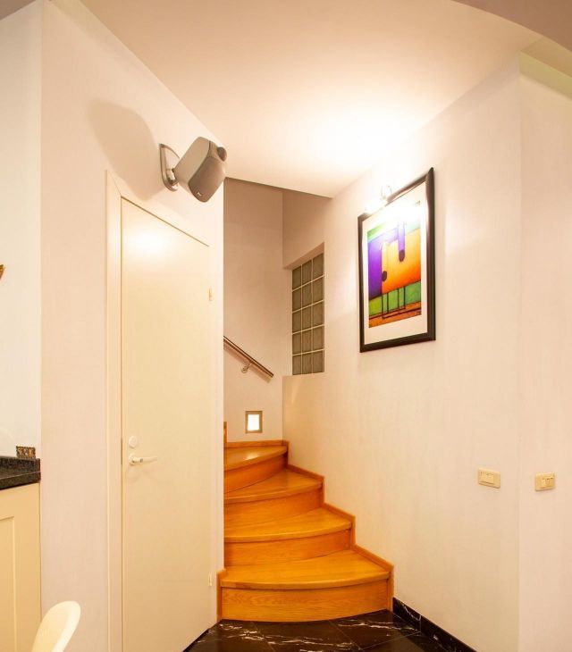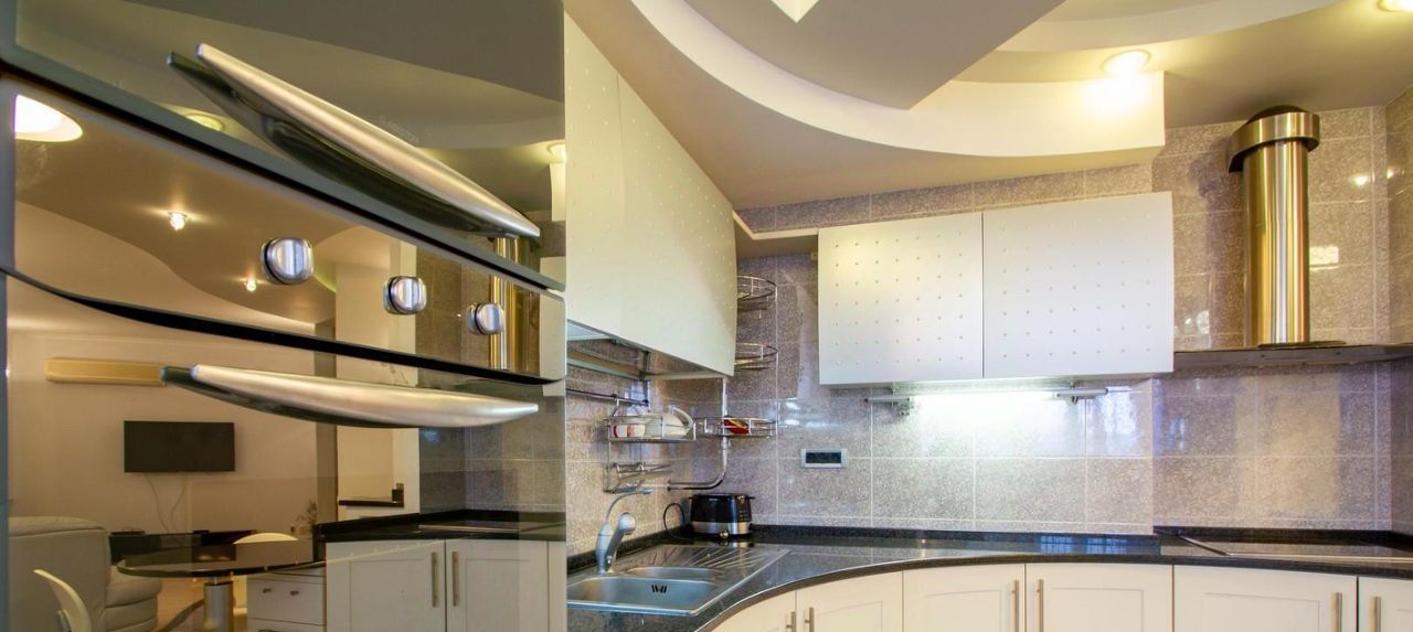 Вся мебель, двери и декор итальянского производства. Кухня фабрики Scavolini. Коллекционная плитка Versace. Светильники из Муранского стекла. Двери фабрики Alfa Lum. В стенах санузлов сделаны витражные вставки. Напольные покрытия: керамогранит и паркетная доска. В квартире имеется все что нужно для комфортного проживания включая посуду и постельное белье.