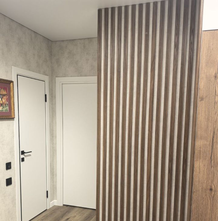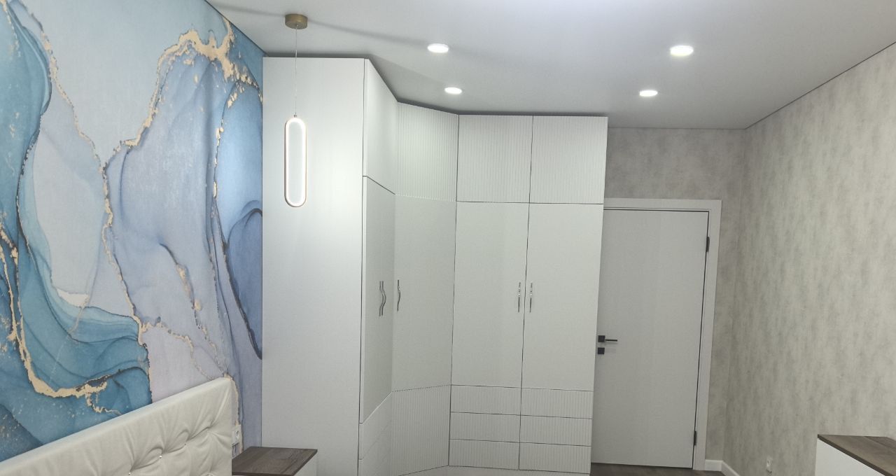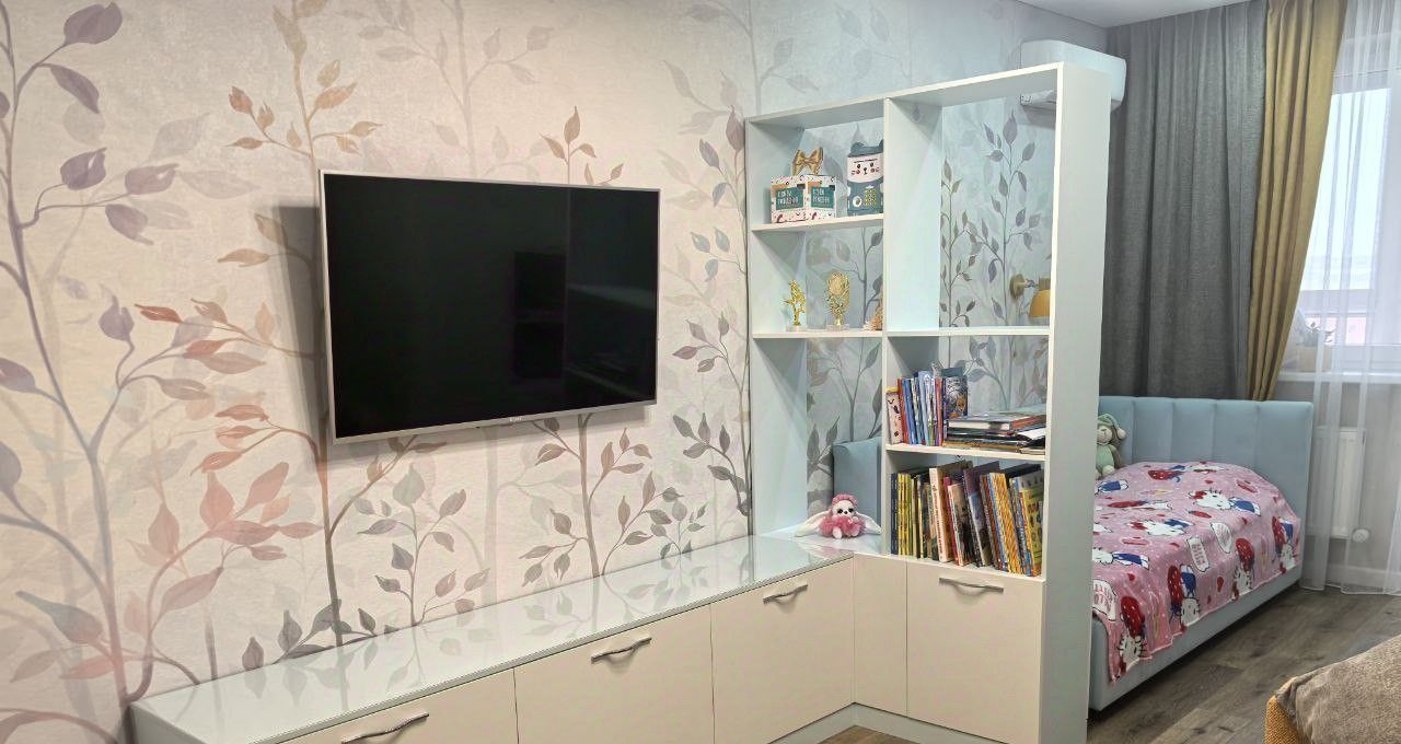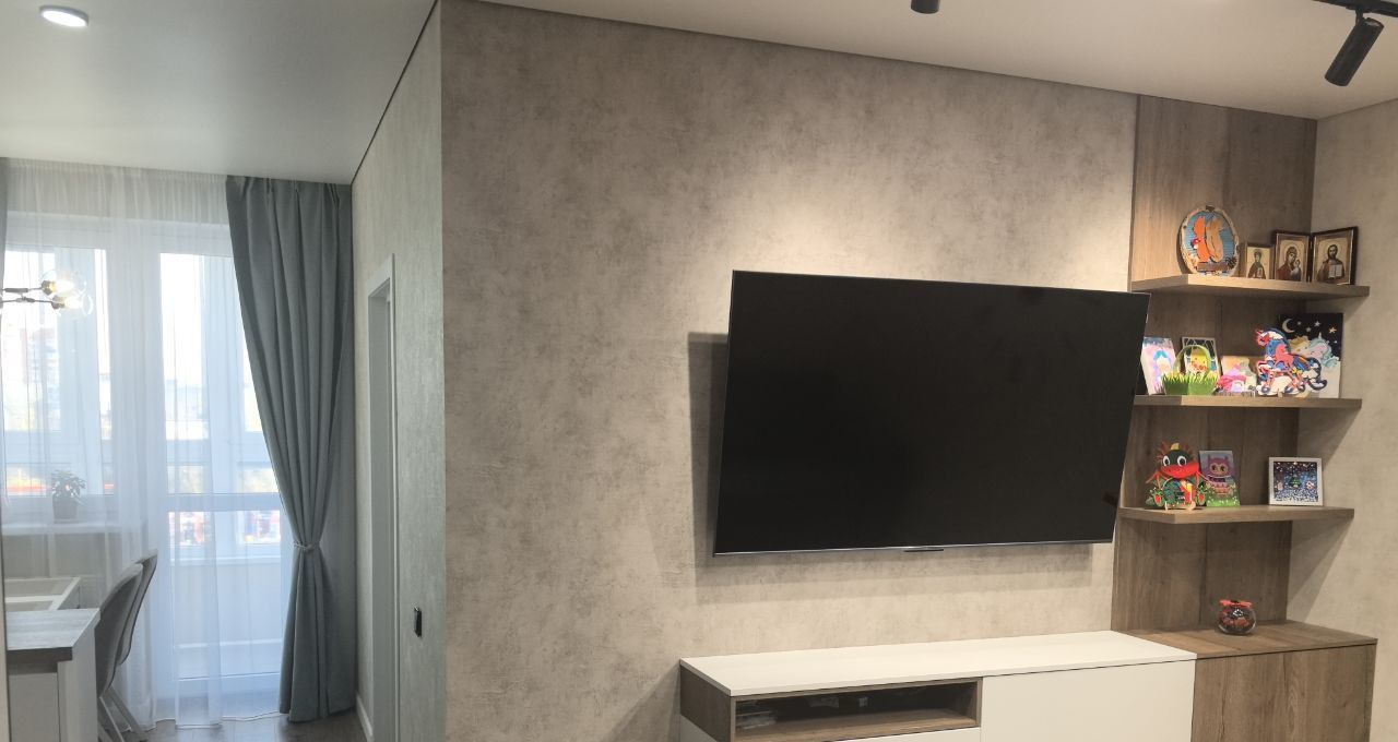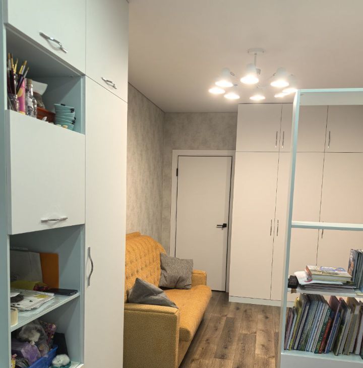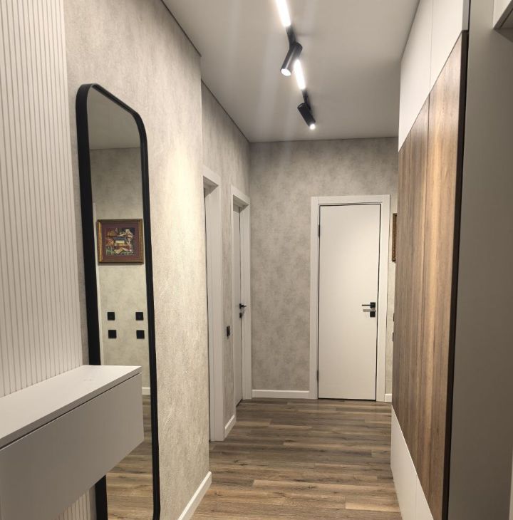 Во всей квартире уложен качественный кварцвинил. В гостиной и коридоре установлено трековое освещение. Все комнаты оборудованы встроенной мебелью.