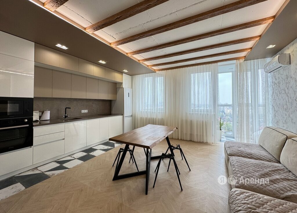Сдаётся 3-комнатная квартира площадью 67 кв.м. с дизайнерским ремонтом на 19 этаже в 26-этажном доме на срок от 11 месяцев. Из техники есть:
