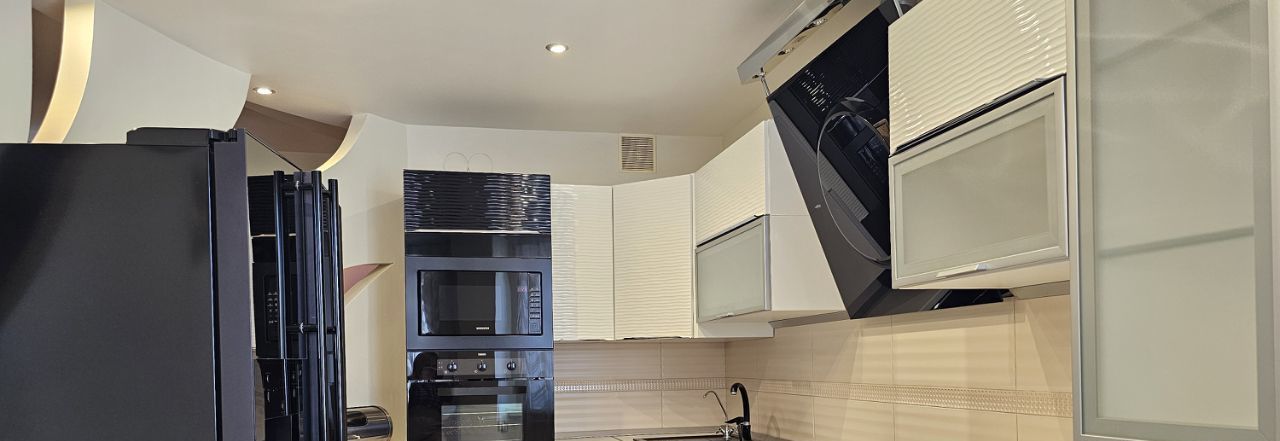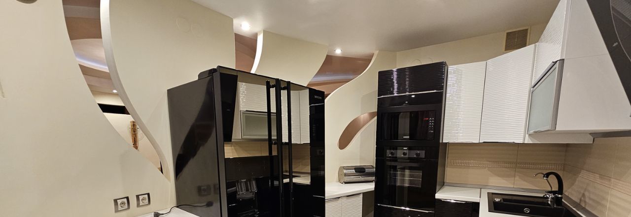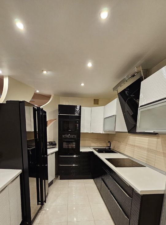 Кухня оборудована современной техникой, включая холодильник Самсунг Side-by-Side с генератором льда.