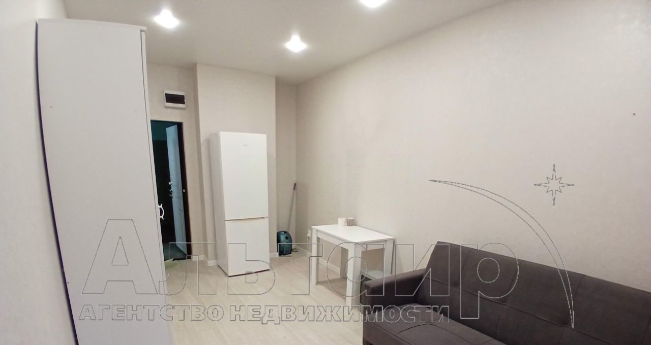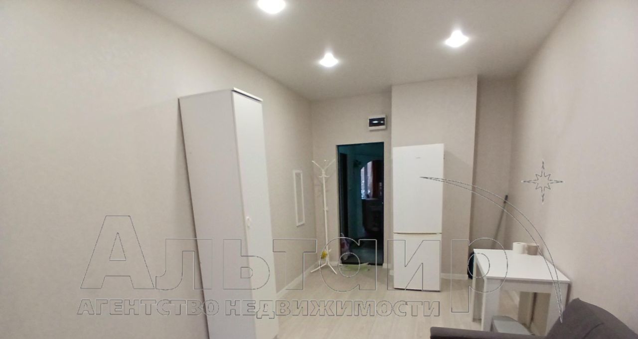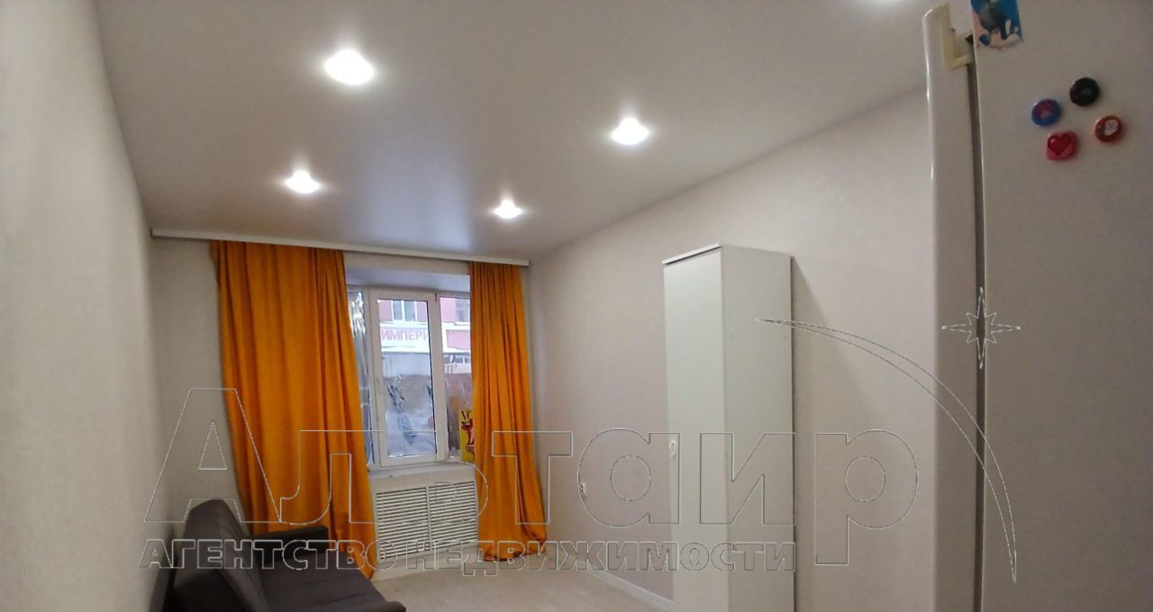 В комнате площадью 17 кв.м. сделан ремонт, все в хорошем состоянии, есть холодильник, диван, шкаф.