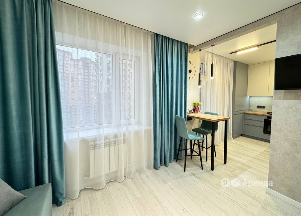 Сдаётся студия площадью 31 кв.м. с евроремонтом на 10 этаже в 22-этажном доме на срок от 11 месяцев. Из техники есть: