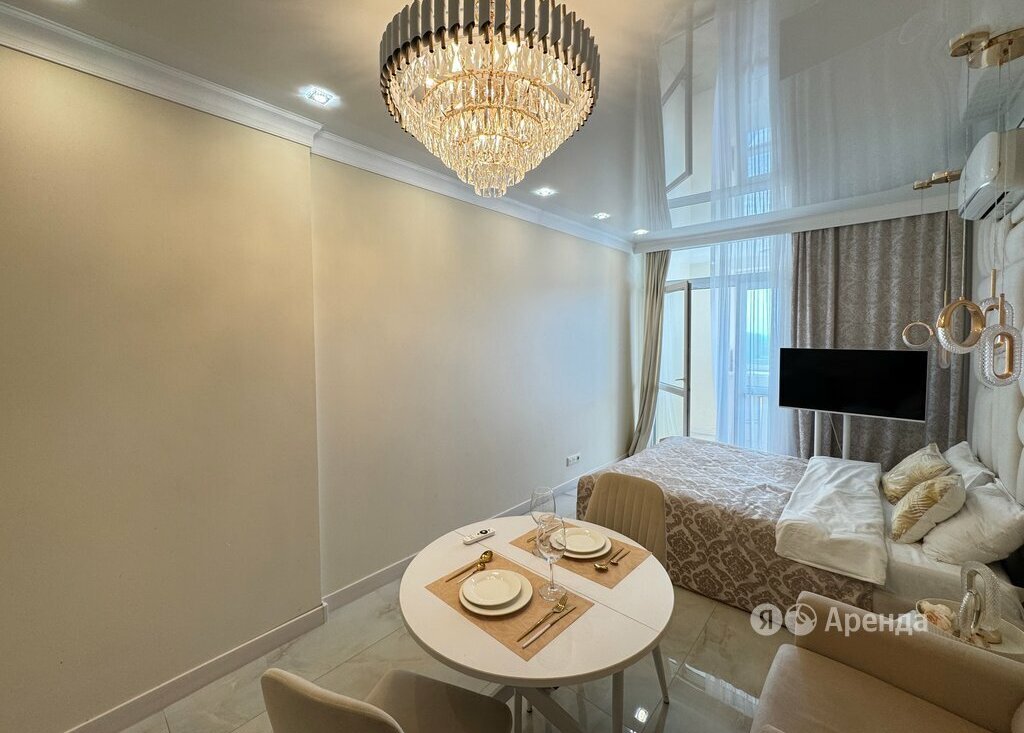 Сдаётся студия площадью 30 кв.м. с дизайнерским ремонтом на 25 этаже в 25-этажном доме на срок от 11 месяцев. Из техники есть: