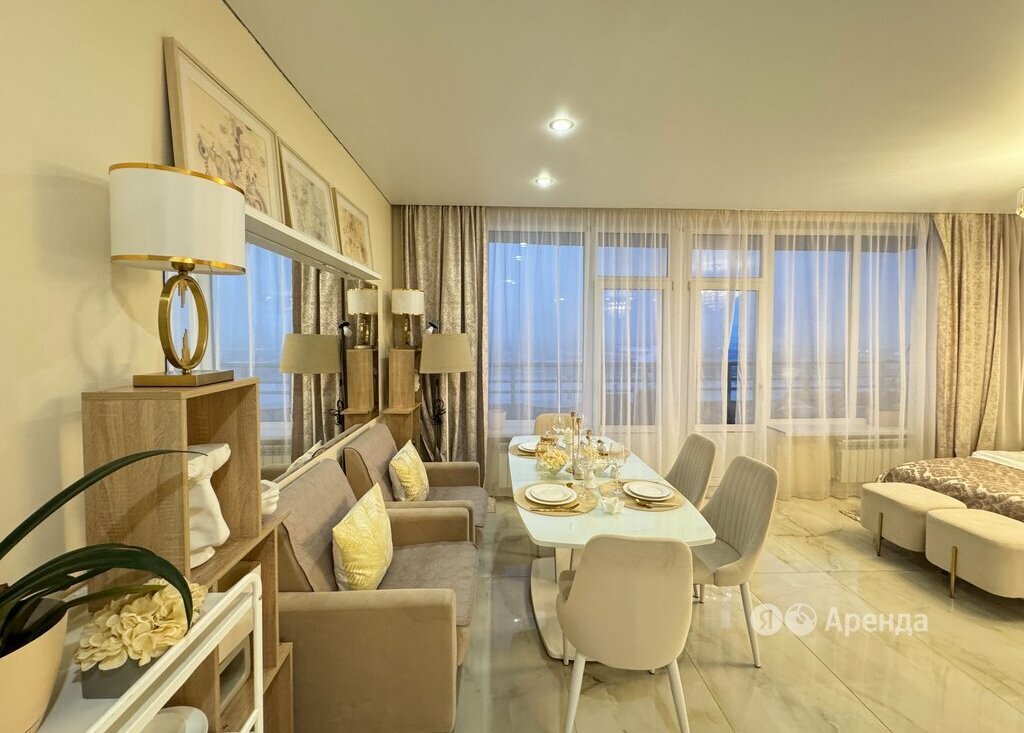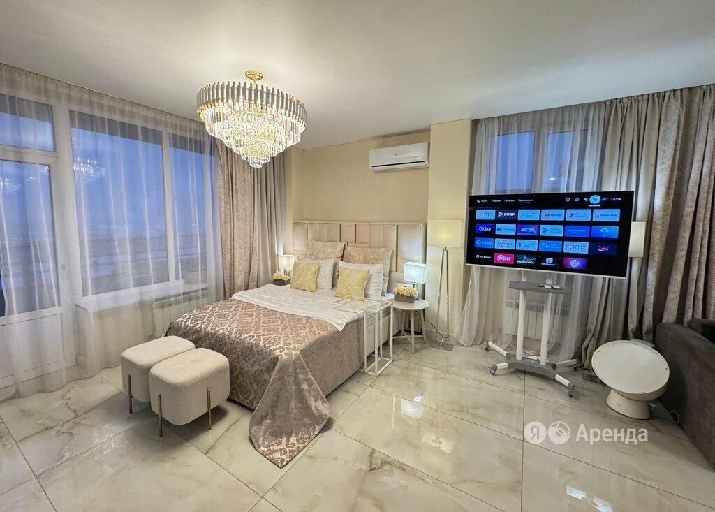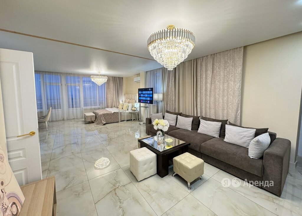 Сдаётся студия площадью 78 кв.м. с дизайнерским ремонтом на 15 этаже в 16-этажном доме на срок от 11 месяцев. Из техники есть: