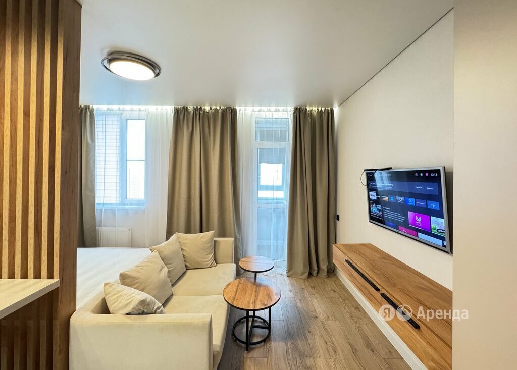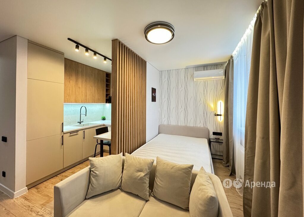 Сдаётся студия площадью 31 кв.м. с дизайнерским ремонтом на 21 этаже в 23-этажном доме на срок от 11 месяцев. Из техники есть: