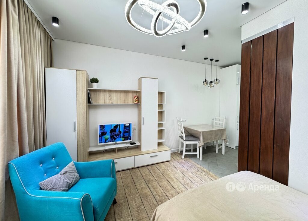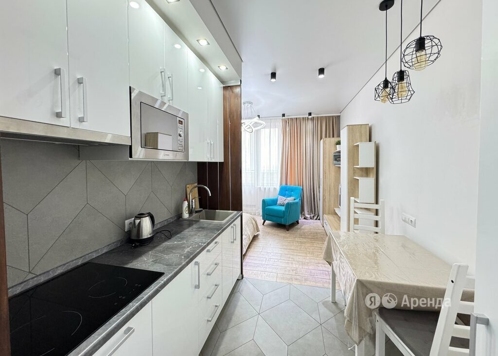 Сдаётся студия площадью 28 кв.м. с дизайнерским ремонтом на 13 этаже в 17-этажном доме на срок от 11 месяцев.