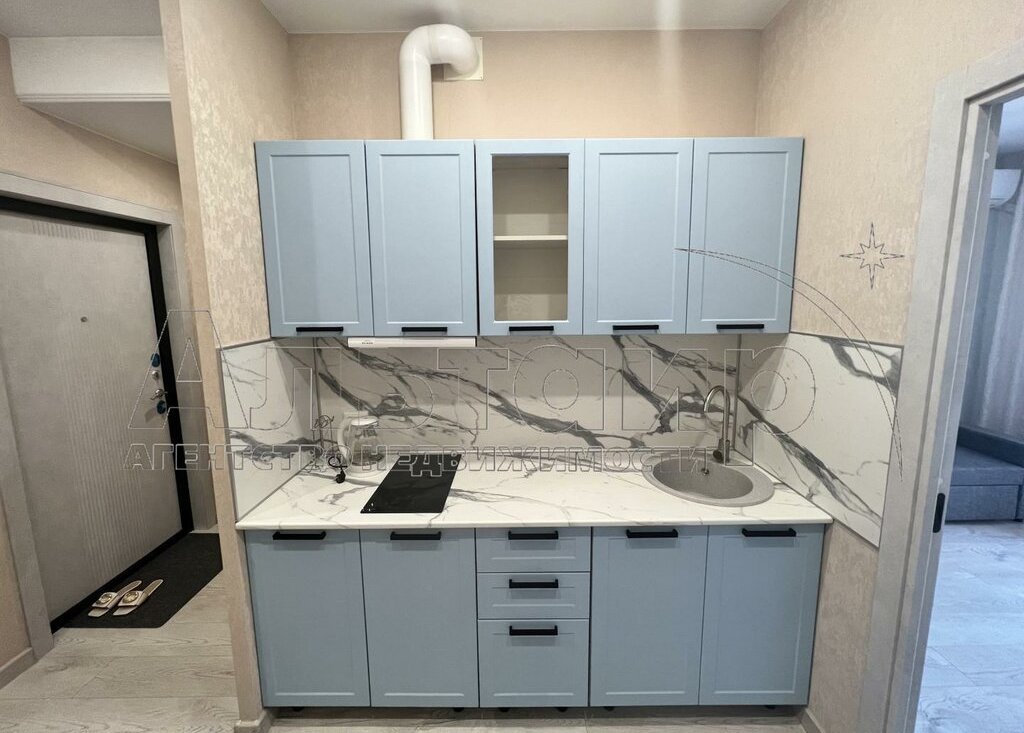 Кухонный гарнитур с встроенной электрической варочной панелью, вытяжка. Сплит система в комнате. 2 шкафа для хранения вещей. На балконе так же установлен шкаф для хоз. нужд. Новая входная дверь. Комната изолирована.