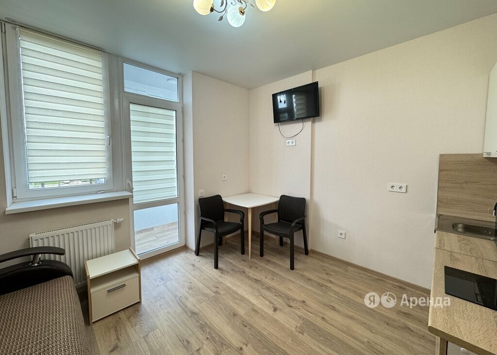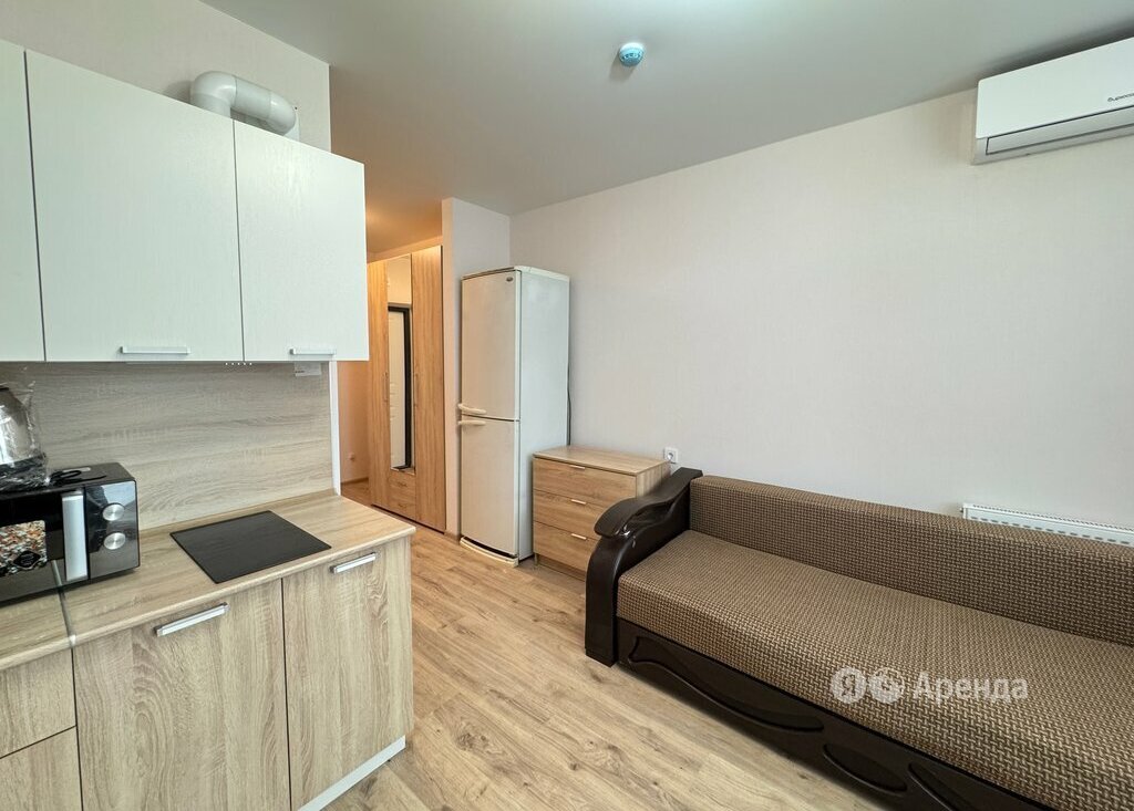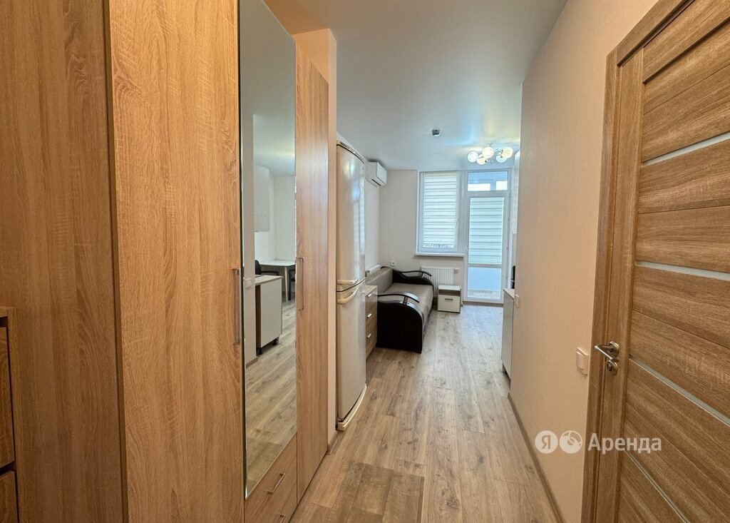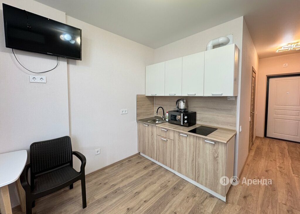 Сдаётся студия площадью 22 кв.м. с евроремонтом на 4 этаже в 25-этажном доме на срок от 11 месяцев. Из техники есть: