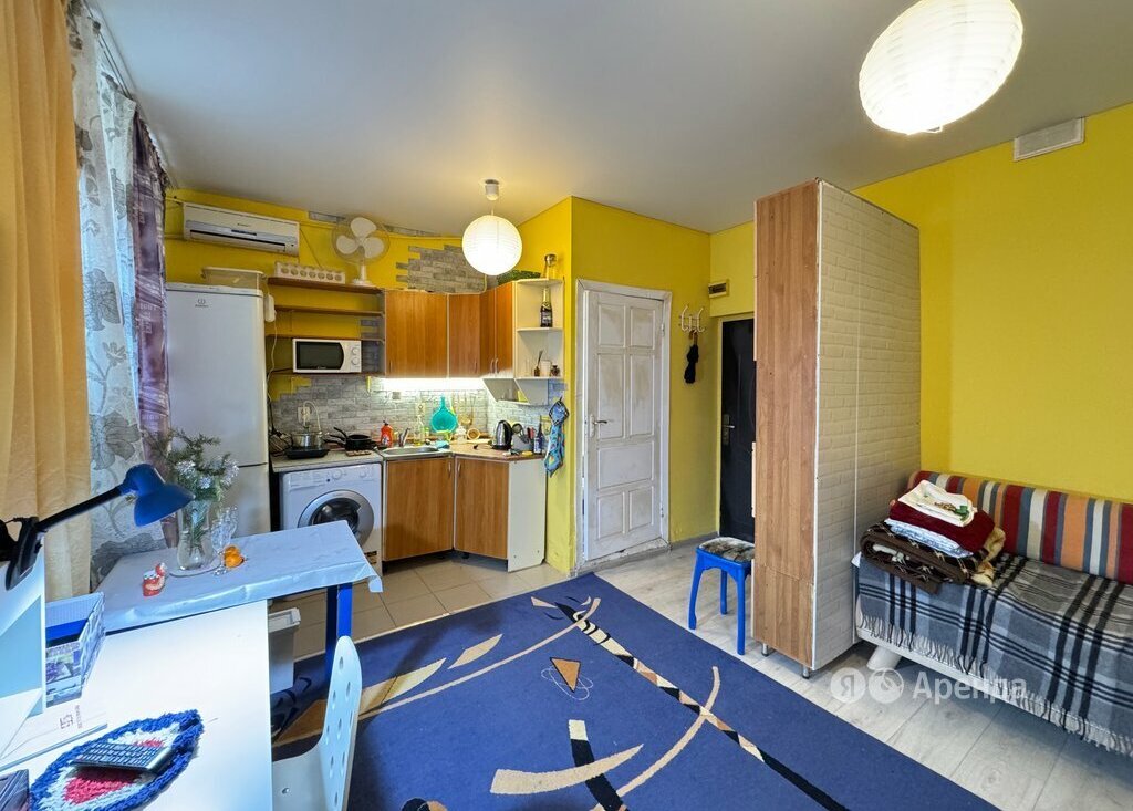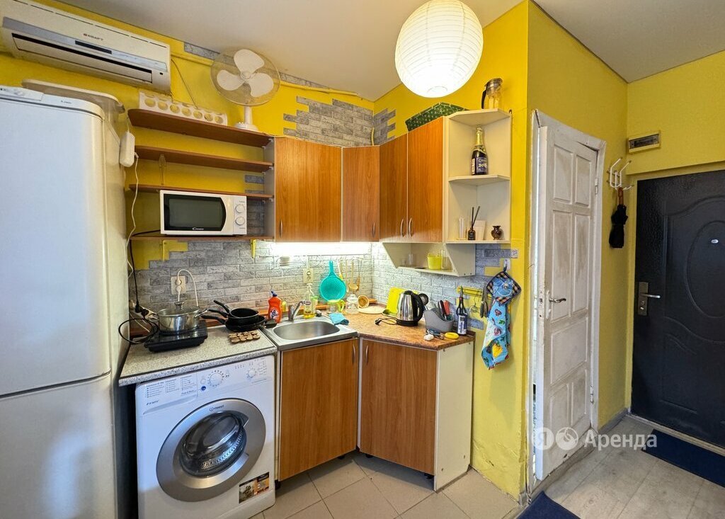 Сдаётся студия площадью 20 кв.м. с косметическим ремонтом на 1 этаже в 5-этажном доме на срок от 11 месяцев. Из техники есть: