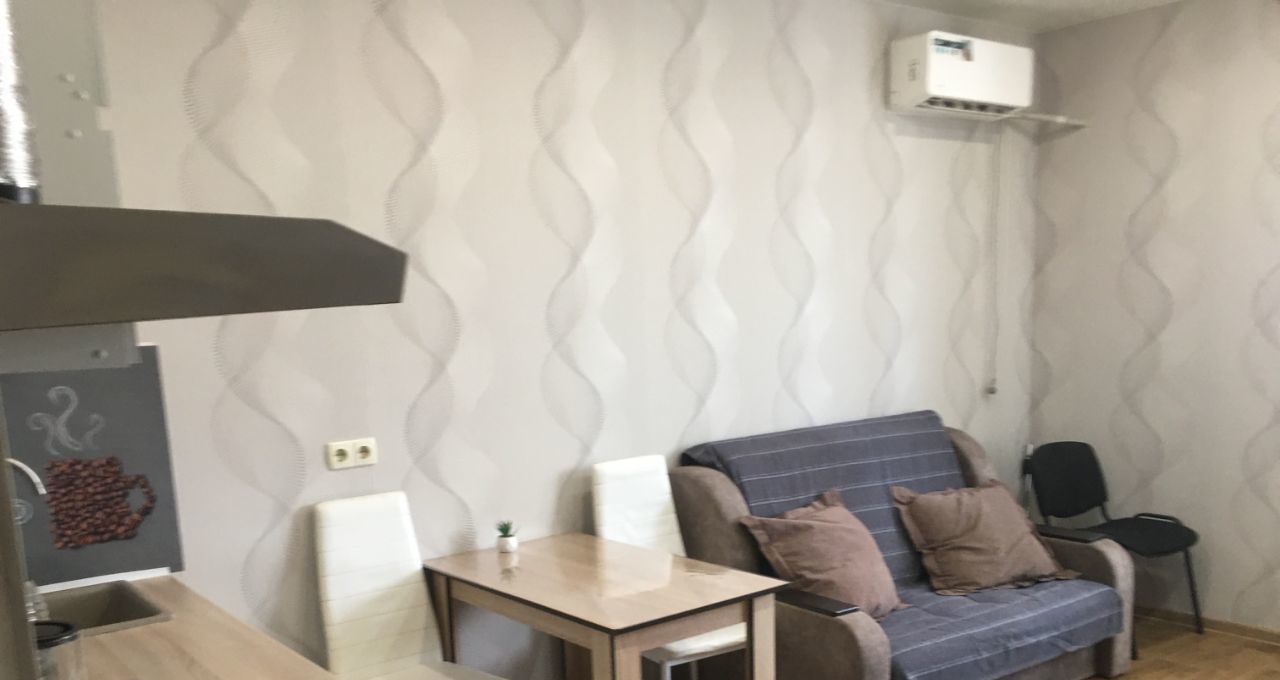Сдаётся студия на Вертолётном поле. Рядом остановка общественного транспорта, 41 автобус напрямую довезет до центрального рынка. Внизу в доме находятся магазин Перекрёсток, Гринднев, в соседнем доме Пятёрочка, что очень удобно, когда нужно сходить за продуктами. Квартира расположена на 2 этаже. В доме есть грузопассажирский лифт. Квартира не угловая, светлая, тёплая. Есть сплитсистема, которая работает и на подогрев, если отопительный сезон ещё не начался, и на охлаждение летом. Удобный раскладывающийся диван. Шкаф для вещей, комод. В кухонной зоне новый обеденный стол, новая электрическая плита с духовкой. Утюг с гладильной доской, пылесос. Холодильник установлен на застеклённом балконе, чтобы в комнате было больше места. На балконе есть ролл шторы, чтобы было комфортно, если нужно затенить комнату при солнечном свете. В прихожей вешалка для верхних вещей, дверь с зеркалом в полный рост. Район вертолетного поля удобен для жизни развитой инфраструктурой. Красивая малоэтажная застройка, новое жилье, хорошие соседи, много парковочных мест, транспортная доступность. Центр в 15 минутах езды на машине, 25 минут на общественном транспорте, до Стачки идти 15 минут, до Портовой 12 минут. Залог можно внести частями. Звоните, отвечу на все вопросы, договоримся о показе.