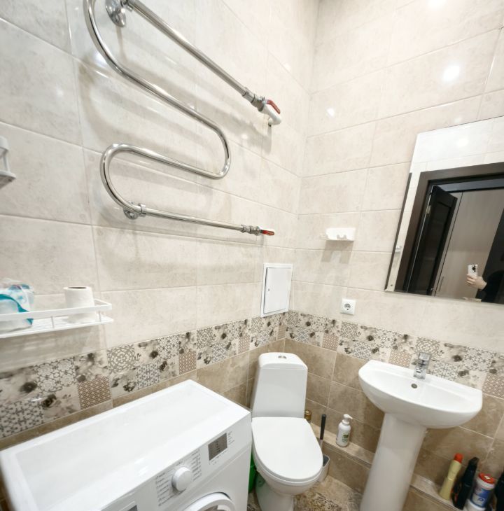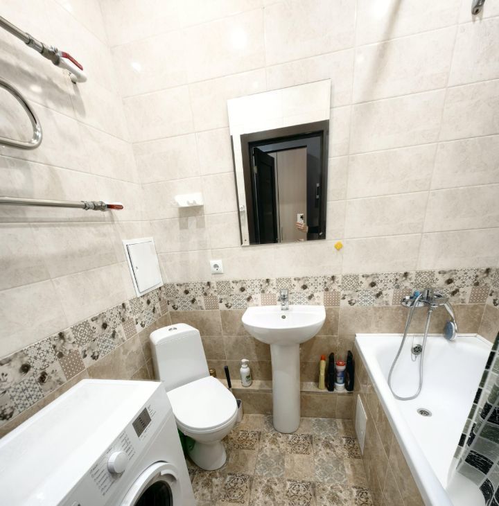 В квартире есть всё необходимое для комфортного проживания: холодильник, стиральная машина, телевизор