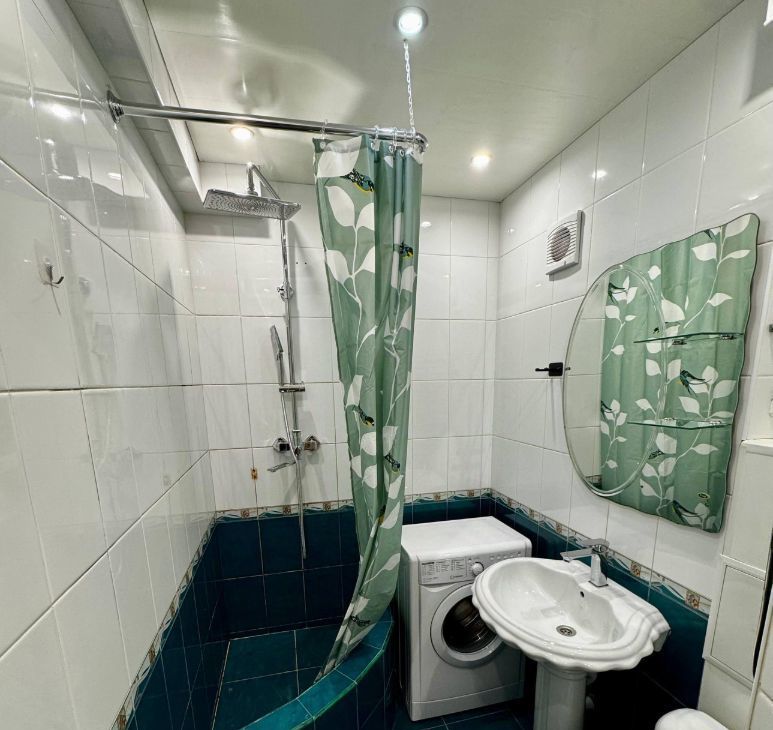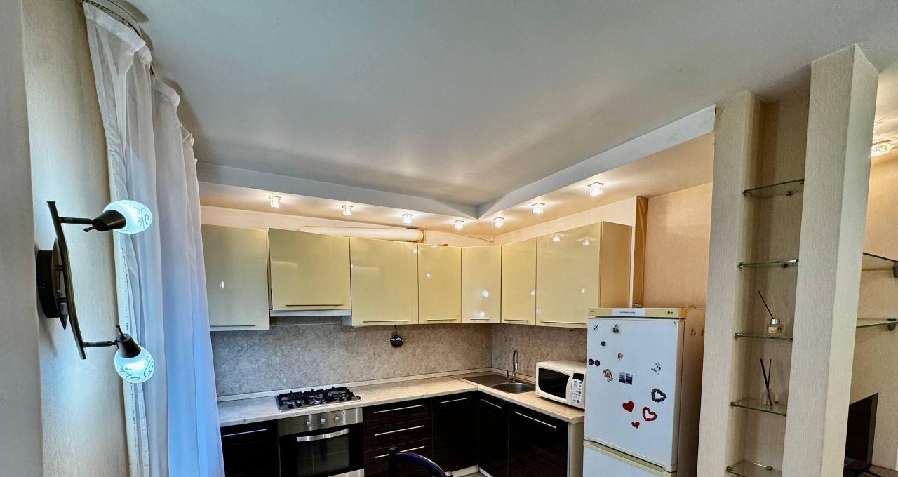 Квартира укомплектована всей необходимой мебелью: 3 встроенных шкафа, стол, диван раскладной, кровать двуспальная (140х200 см.), стул (2), стеллажи и полки, и техникой для комфортного проживания: телевизор, wi-fi роутер (подходящий вам тариф подключаете самостоятельно), сплит система, холодильник, микроволновая печь, стиральная машина, утюг с гладильной доской и тд. (кровать, диван, телевизор, стиральная машина, кассетные шторы на окнах и вся сантехника в квартире - новые).