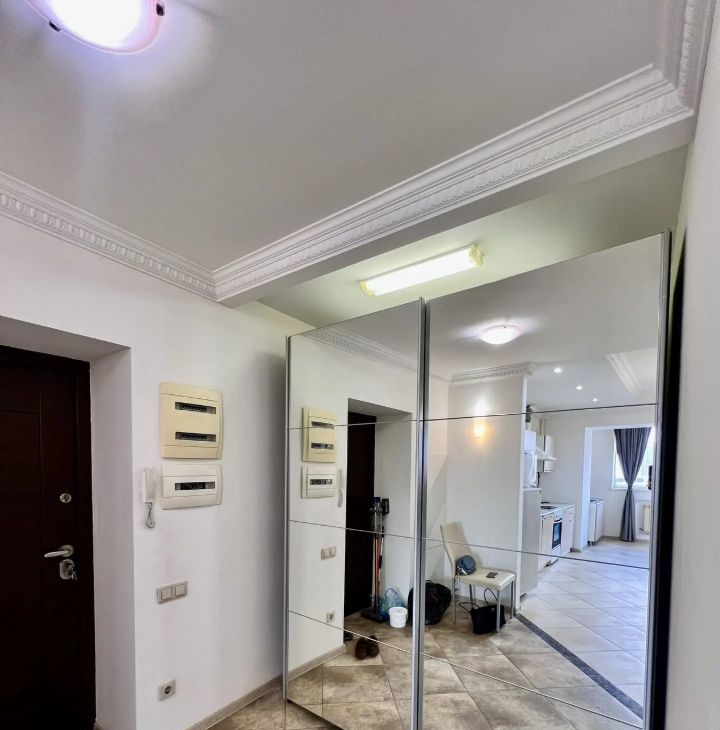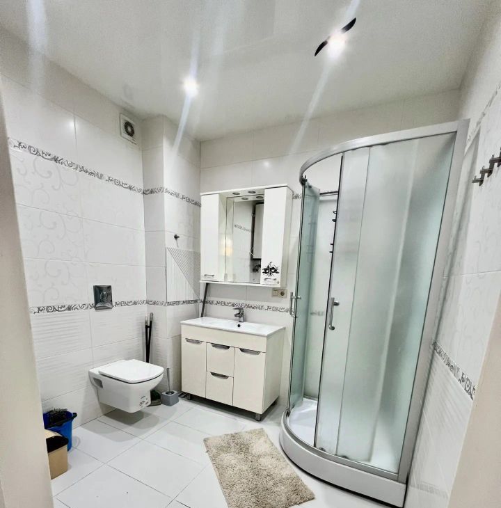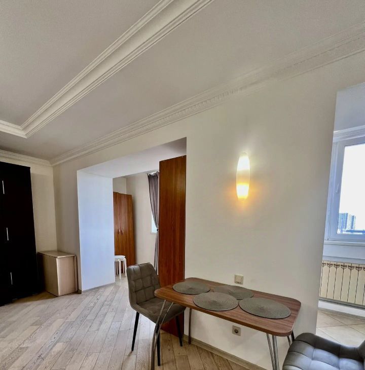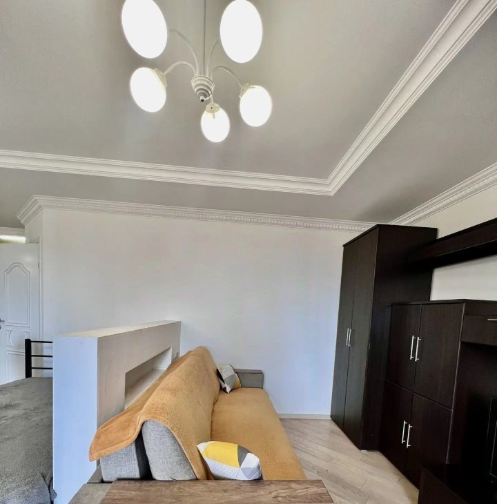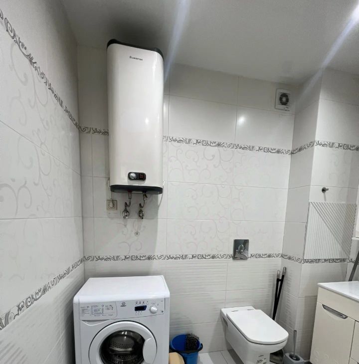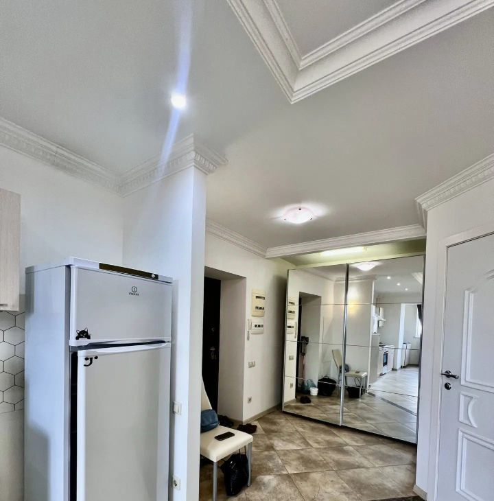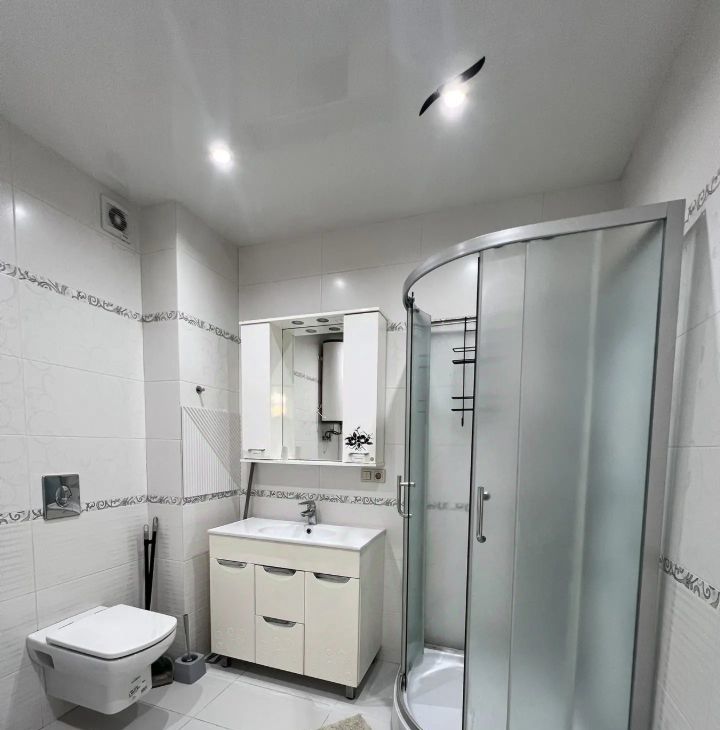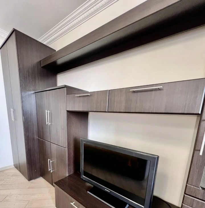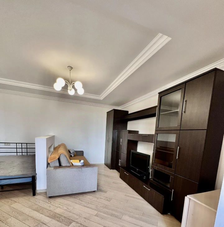 В квартире выполнен евроремонт.Полностью меблирована: есть все необходимое для комфортного проживания — мебель на кухне и в комнате. К вашим услугам также предоставляется полный комплект бытовой техники: кондиционер, холодильник, телевизор и стиральная машина. Совмещенный санузел оборудован душевой кабиной, что добавляет удобства. Установлен бойлер, поэтому перебоев с горячей водой не будет. Балкона нет.
