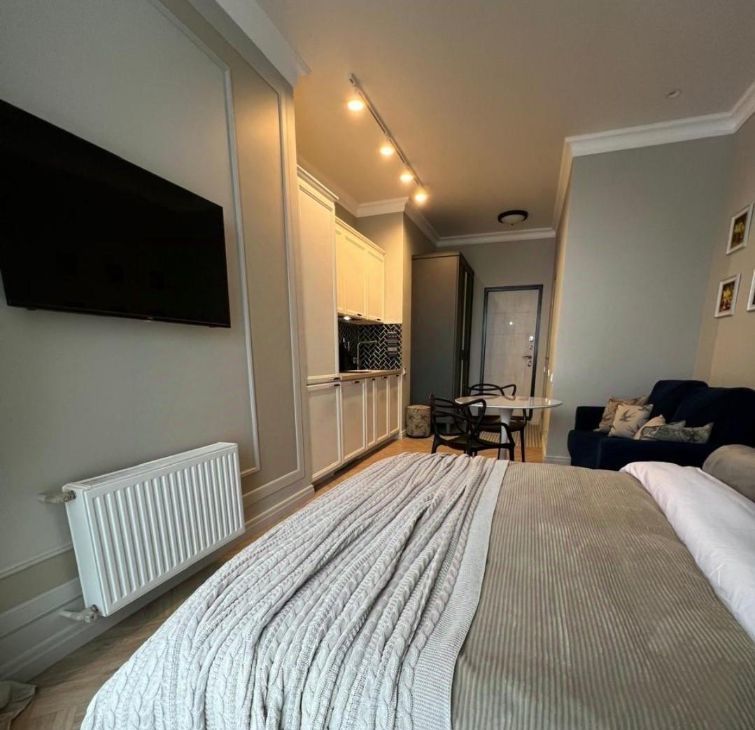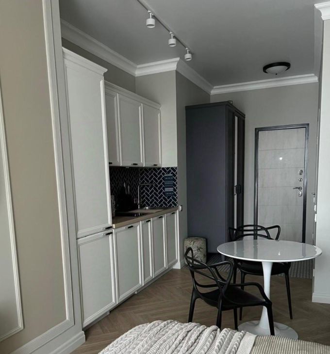 Первая сдача! Сдается стильная студия с дизайнерским ремонтом! Квартира площадью 35 кв. м расположена на 3 этаже современного 11-этажного дома, построенного в 2018 году. Высокие потолки 3.1 метра создают ощущение простора. Окна выходят во двор, что обеспечивает тишину и уют.