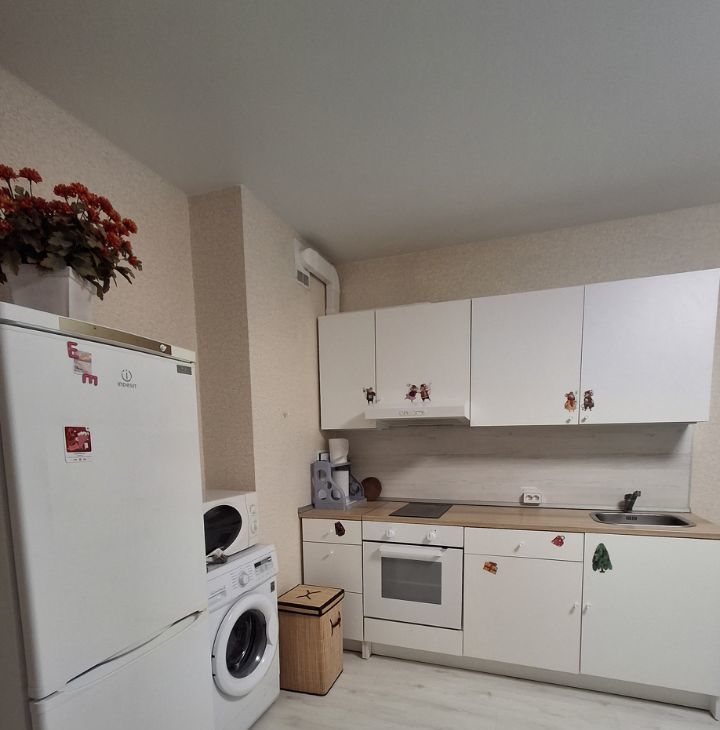 Техника: холодильник, стиральная машина, микроволновка, вытяжка, духовой шкаф, сплит-система, телевизор, пылесос — все готово к вашему комфорту!