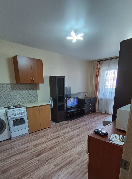 В квартире есть всё необходимое для комфортного проживания. Косметический ремонт создаёт светлую и приятную атмосферу. Мебель на кухне и в комнате позволяет сразу заселиться без лишних хлопот. В наличии вся необходимая техника: стиральная машина, холодильник и телевизор. Совмещённый санузел оборудован ванной.