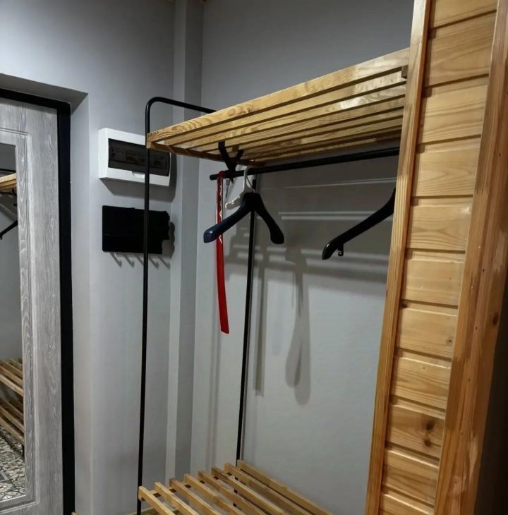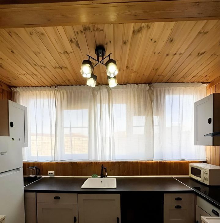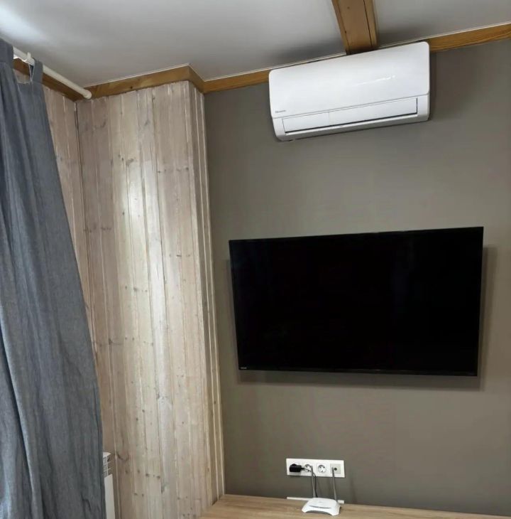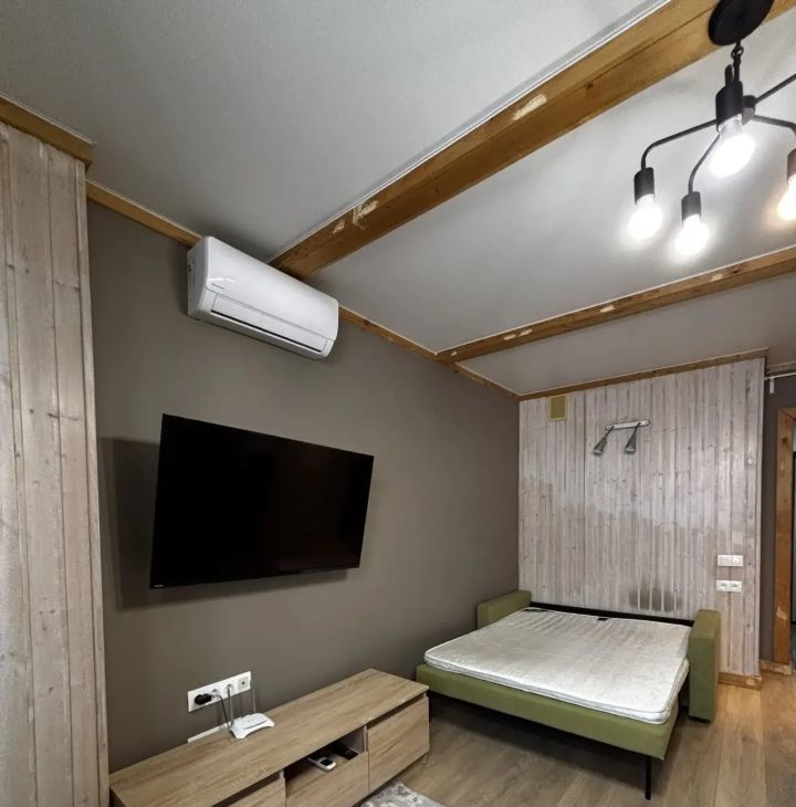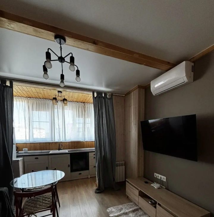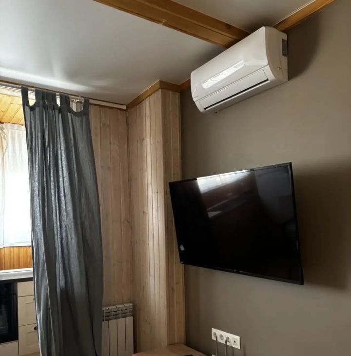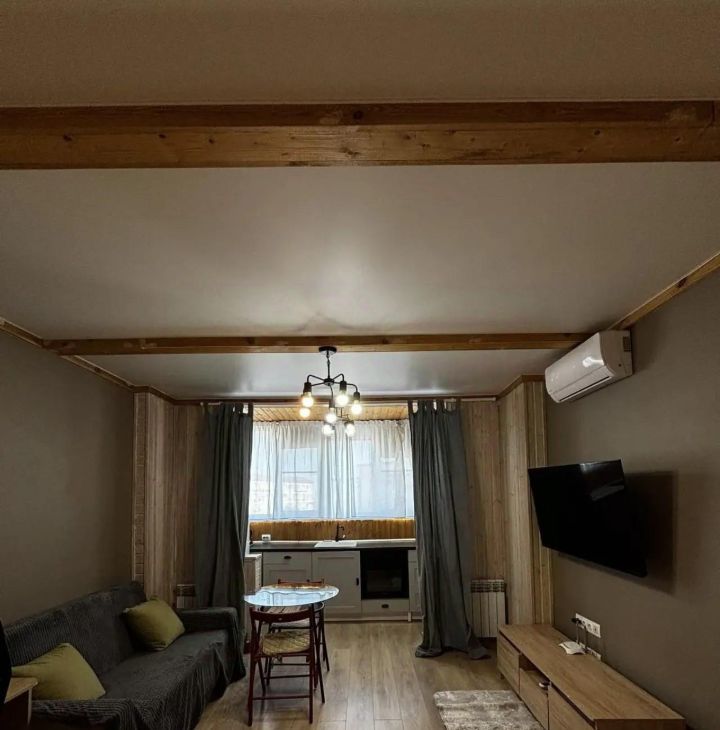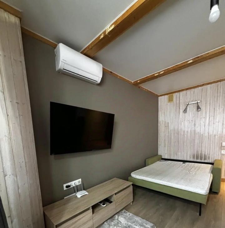 В квартире выполнен качественный евро ремонт. На кухне: холодильник, индукционная плита, микроволновая печь. В комнате установлен кондиционер и телевизор. Из мебели — вместительный шкаф и обеденный стол. Два раскладывающихся дивана.