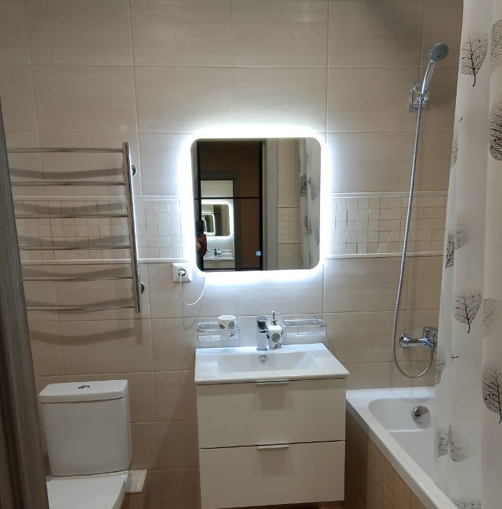 Санузел совмещённый, есть стиральная машина. Лоджия застеклена и утеплена, что позволяет использовать её как дополнительное пространство.