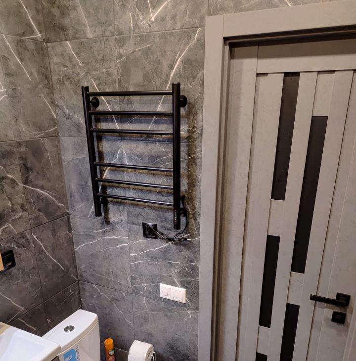 Ванная комната с тёплым полом, она совмещена и оформлена в современных тонах. В наличии цифровое ТВ, интернет.