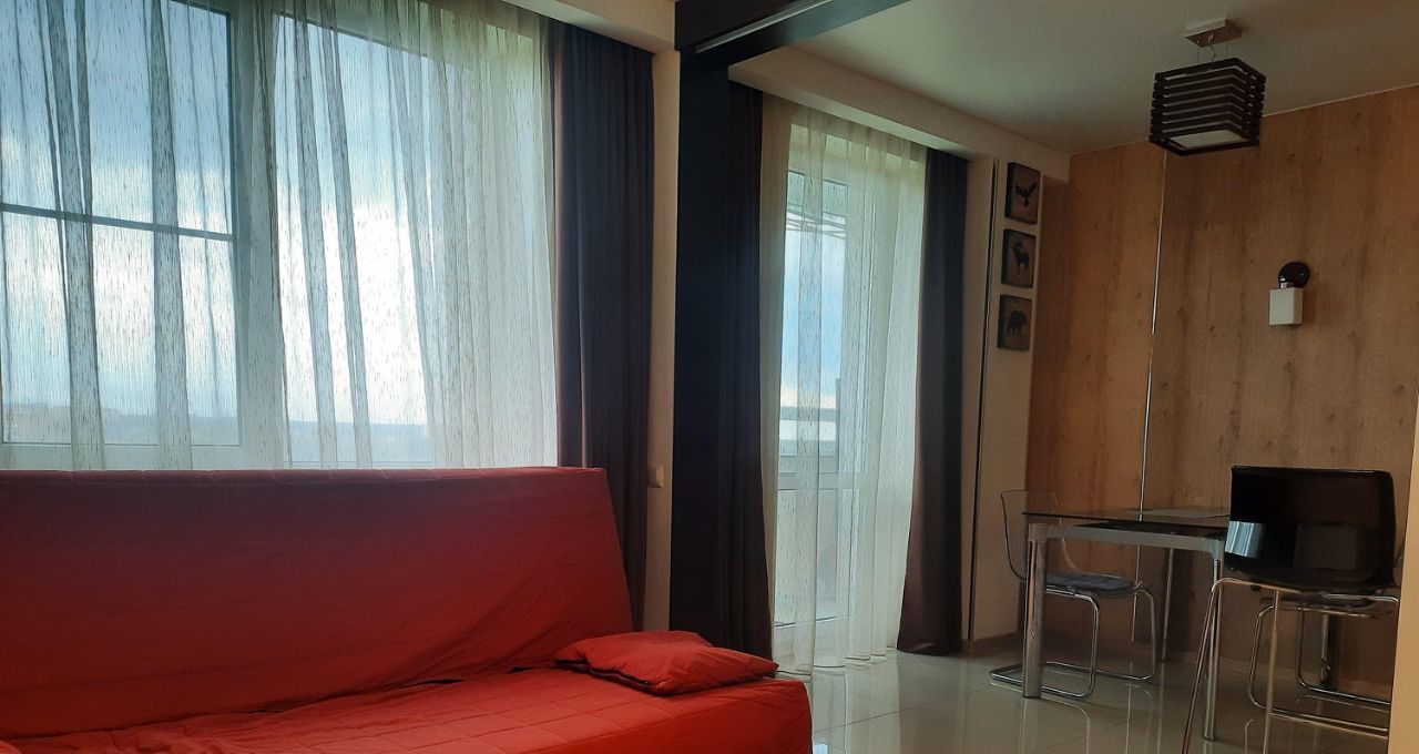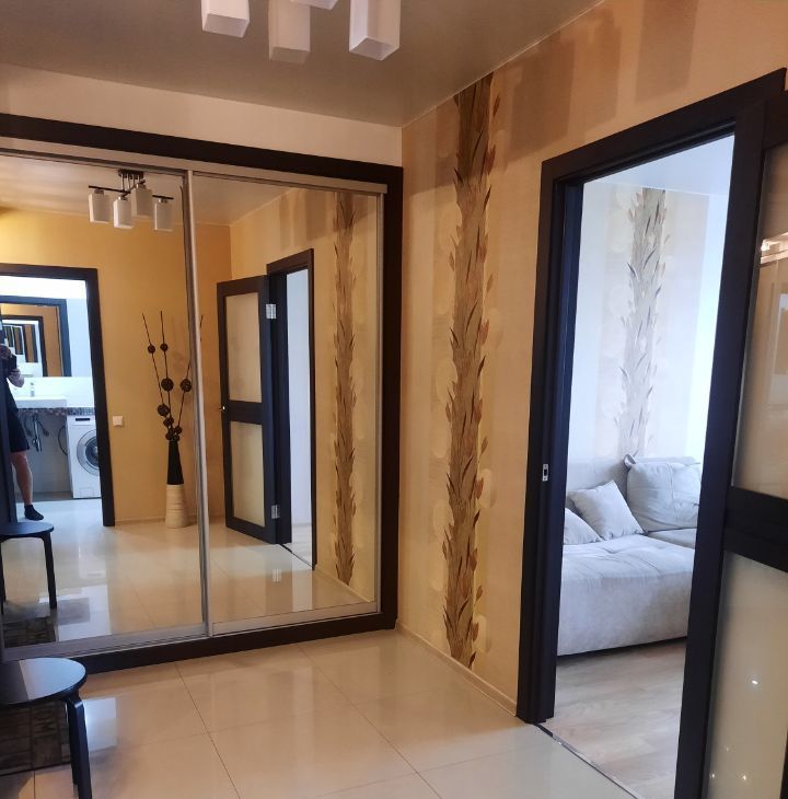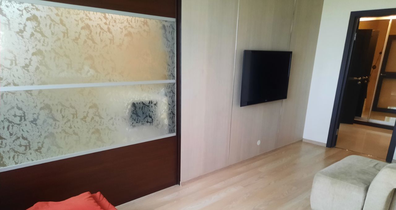 Сдаётся 1 комнатная зонированная квартира с евроремонтом на 10-м этаже 16-этажного блочного дома, построенного в 2013 году. Общая площадь квартиры составляет 45 кв. м